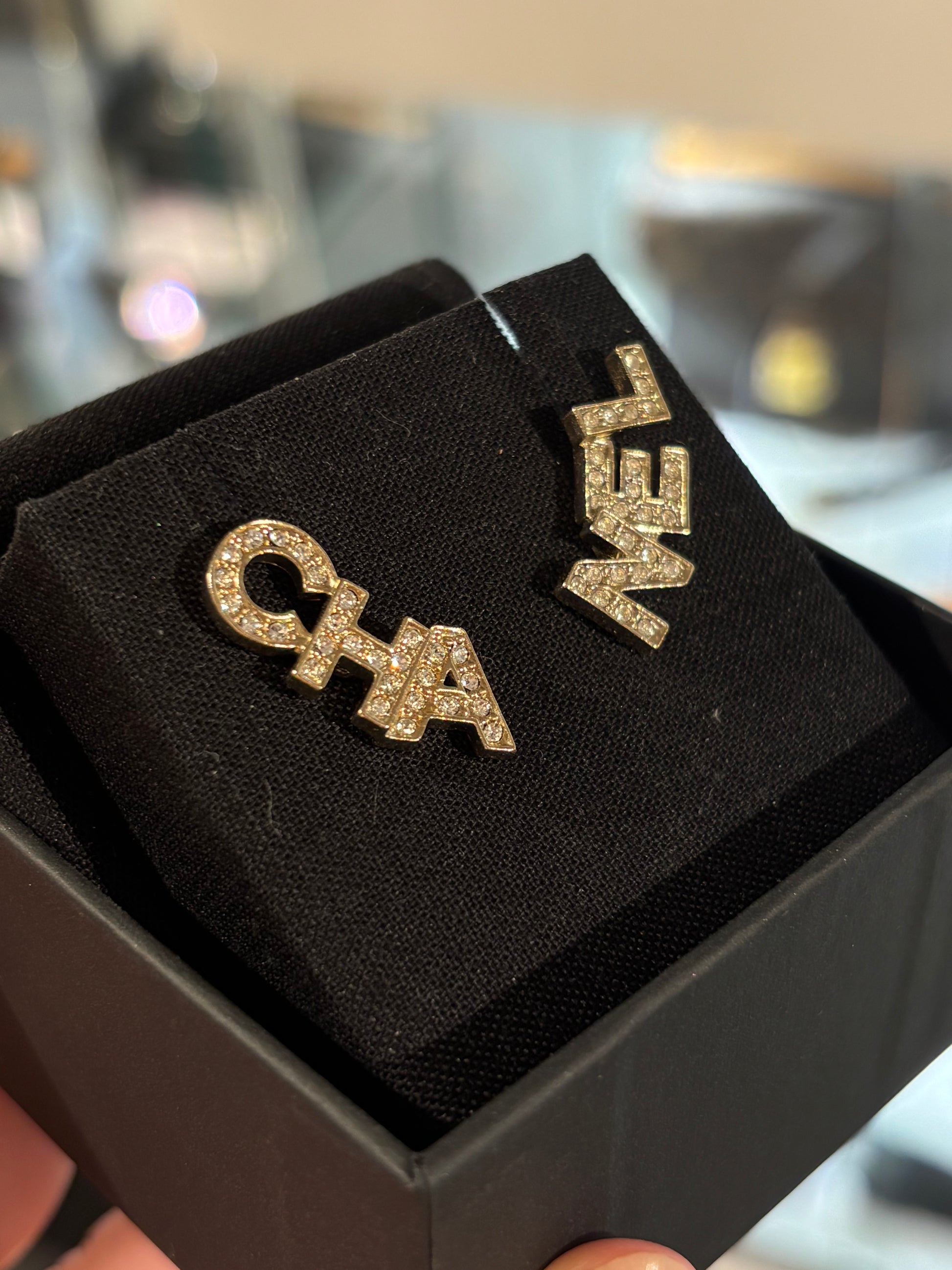 The ultimate pair of iconic Chanel earrings – instantly recognizable, timeless, and endlessly chic. One earring spells CHA and the other NEL, forming the full Chanel name when worn together – a true statement of luxury and style. They feature Chanel’s signature stamp on the back. An extraordinary collector’s piece that embodies the essence of Chanel: elegant, modern, and forever iconic. One of the most classic and sought-after Chanel earring designs.