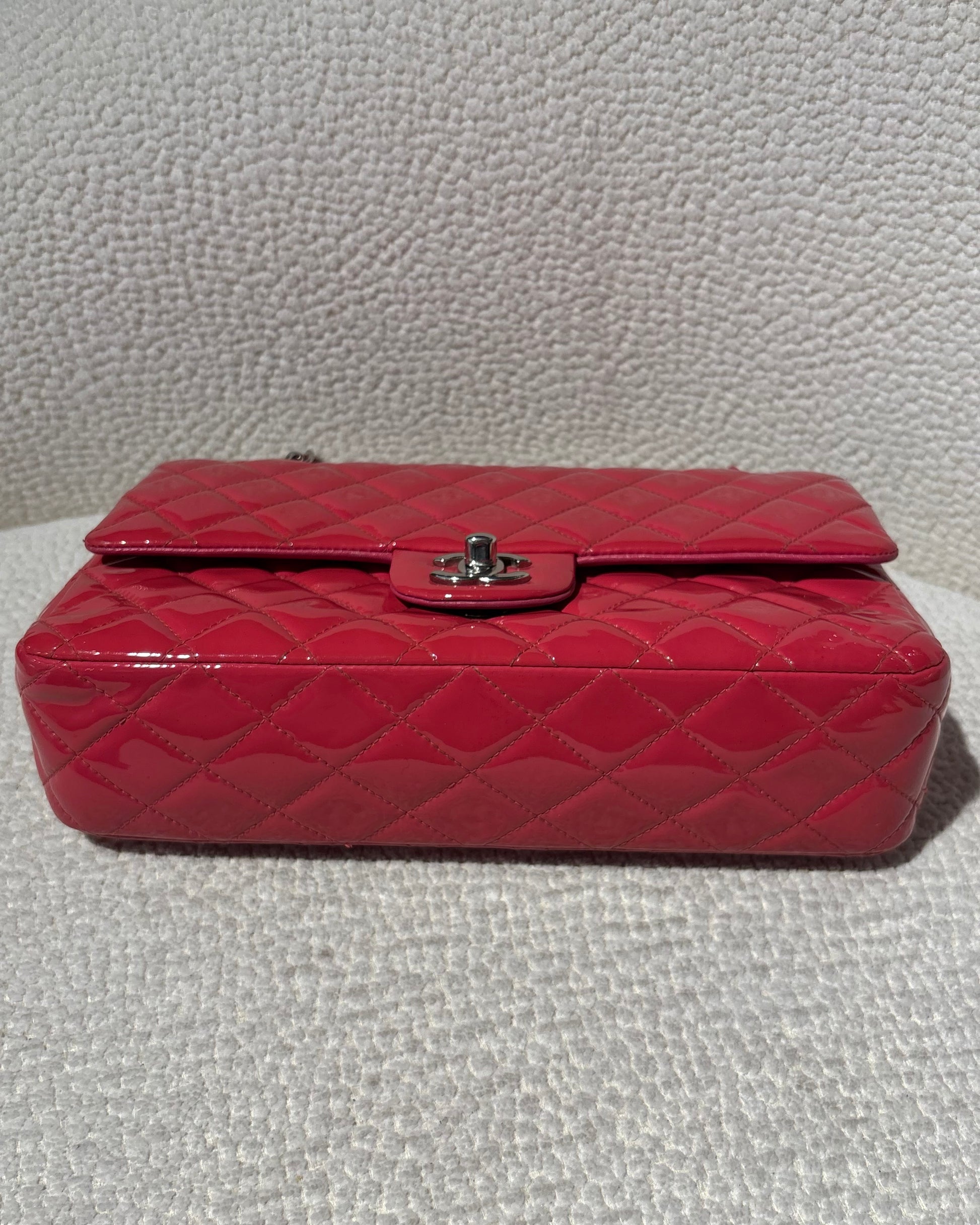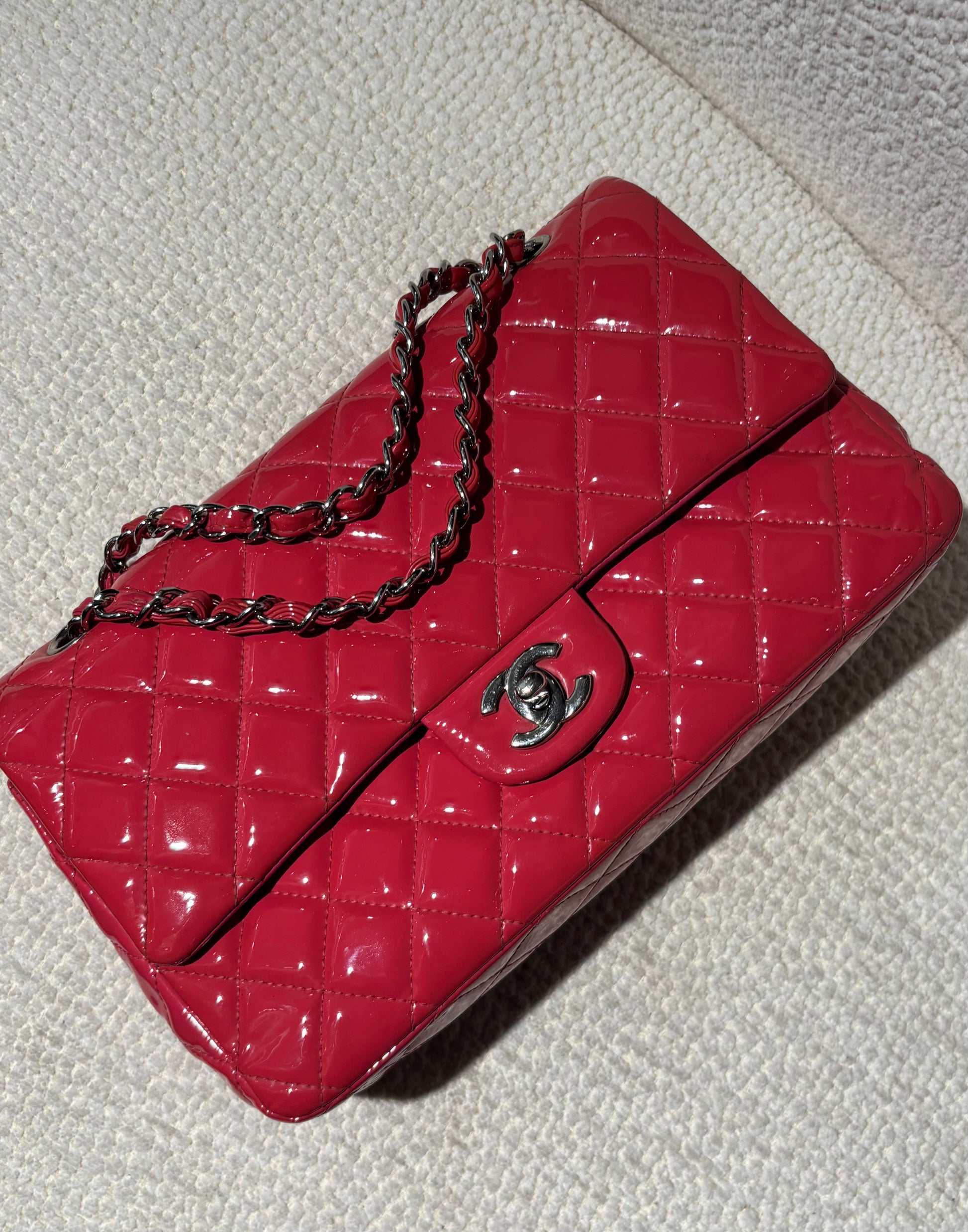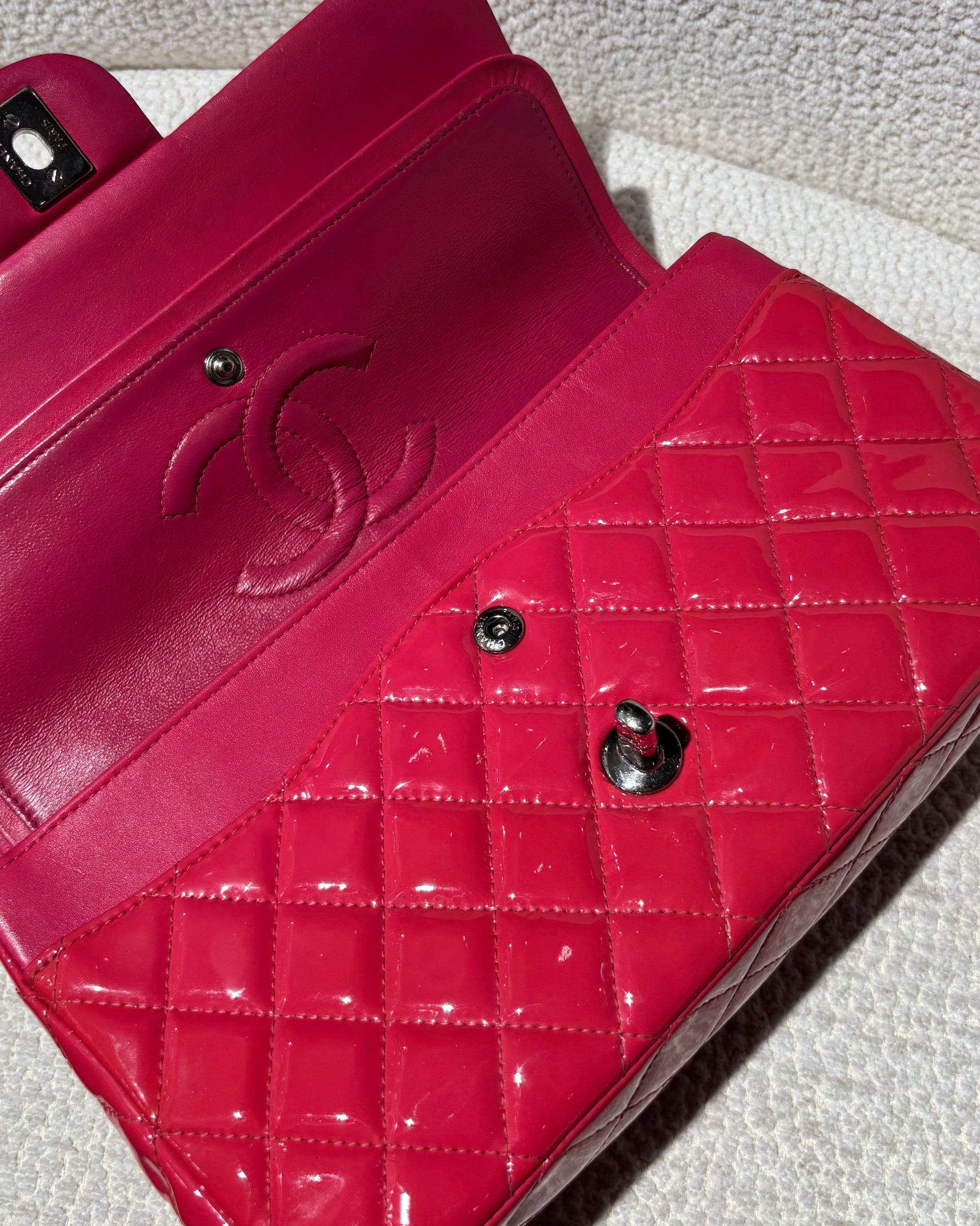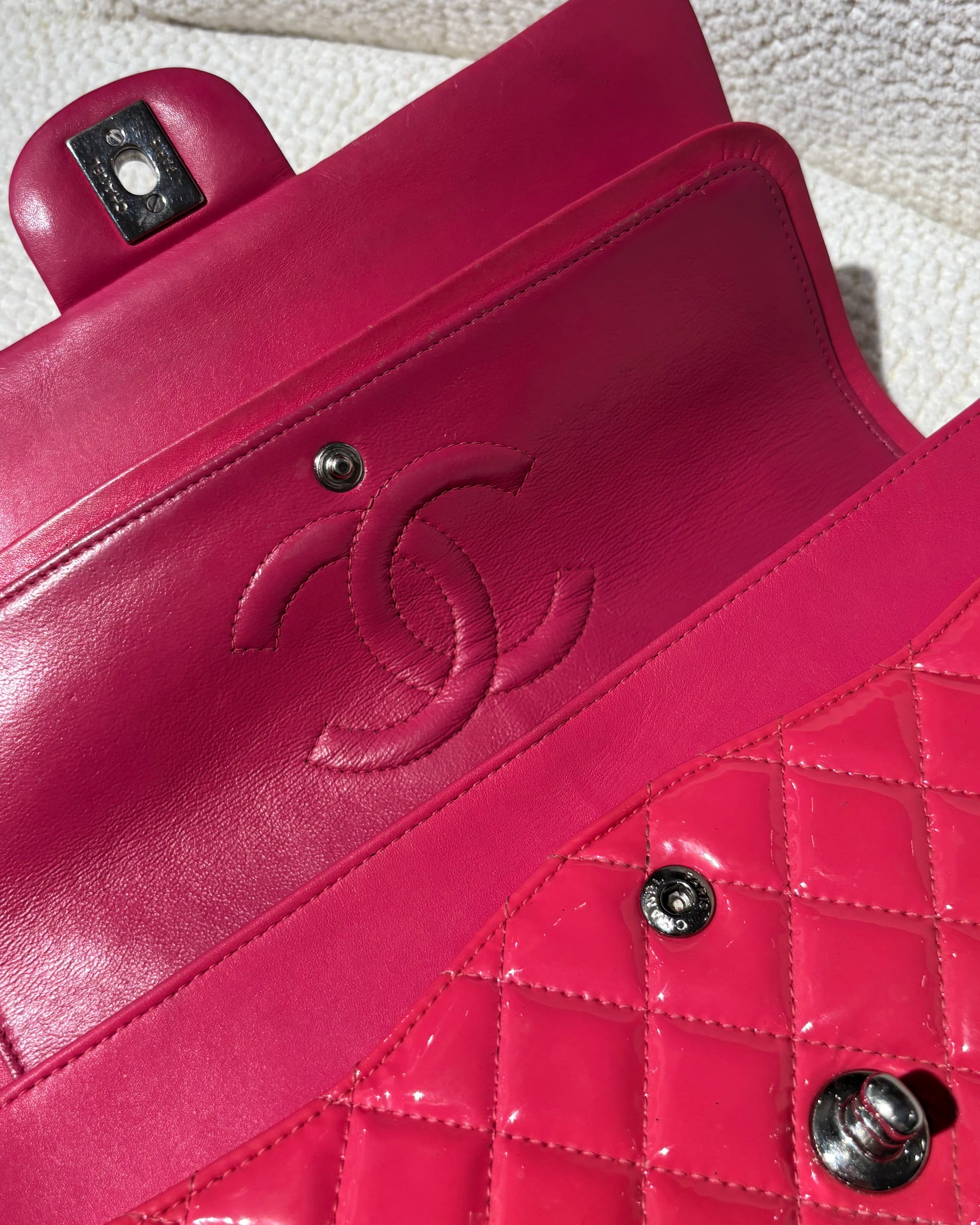 Chanel Flap Bag - Raspberry Patent Leather & Silver Hardware