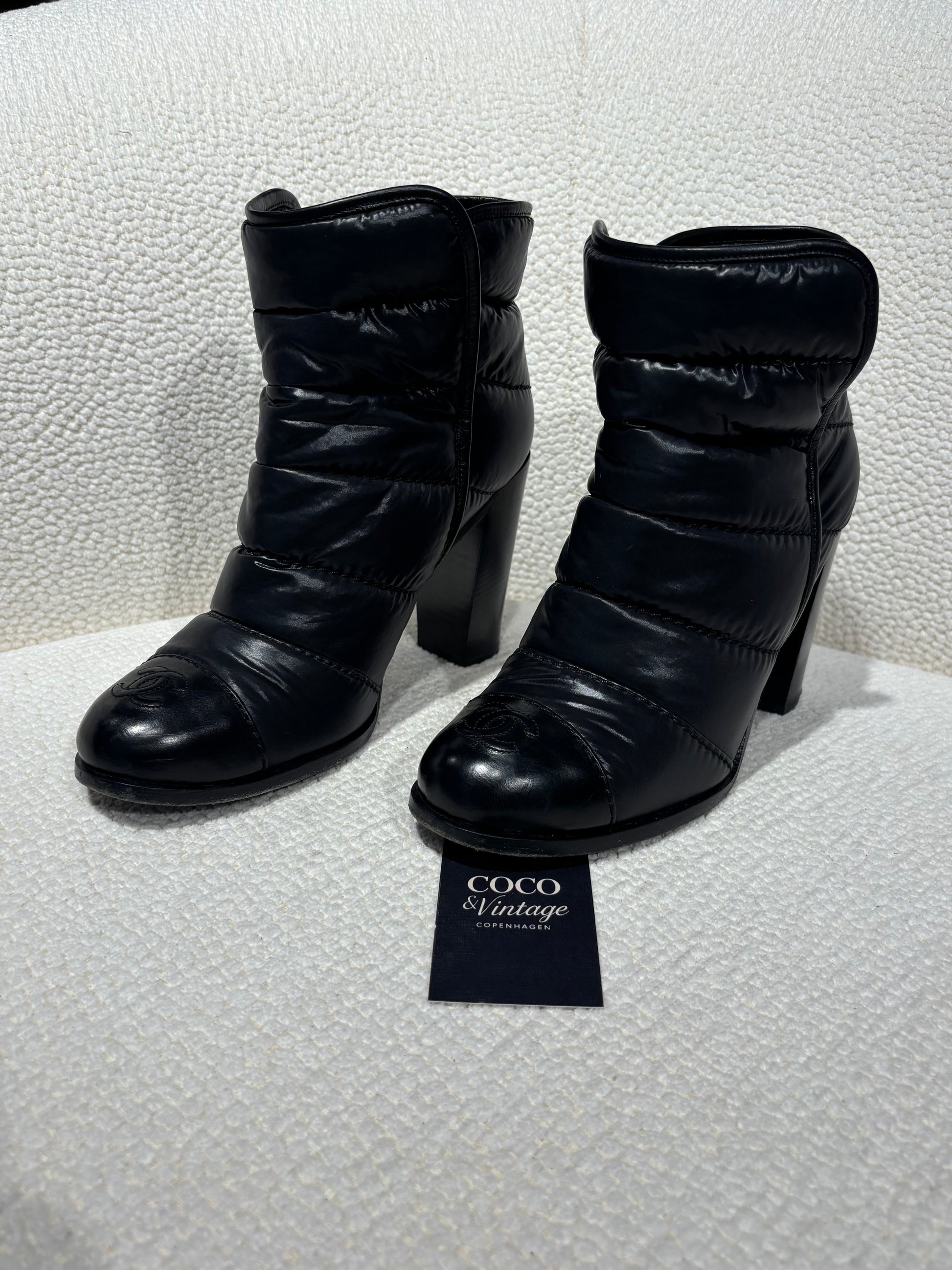Chanel Puffer Heel Boots – Black Nylon & Lambskin - EU 40