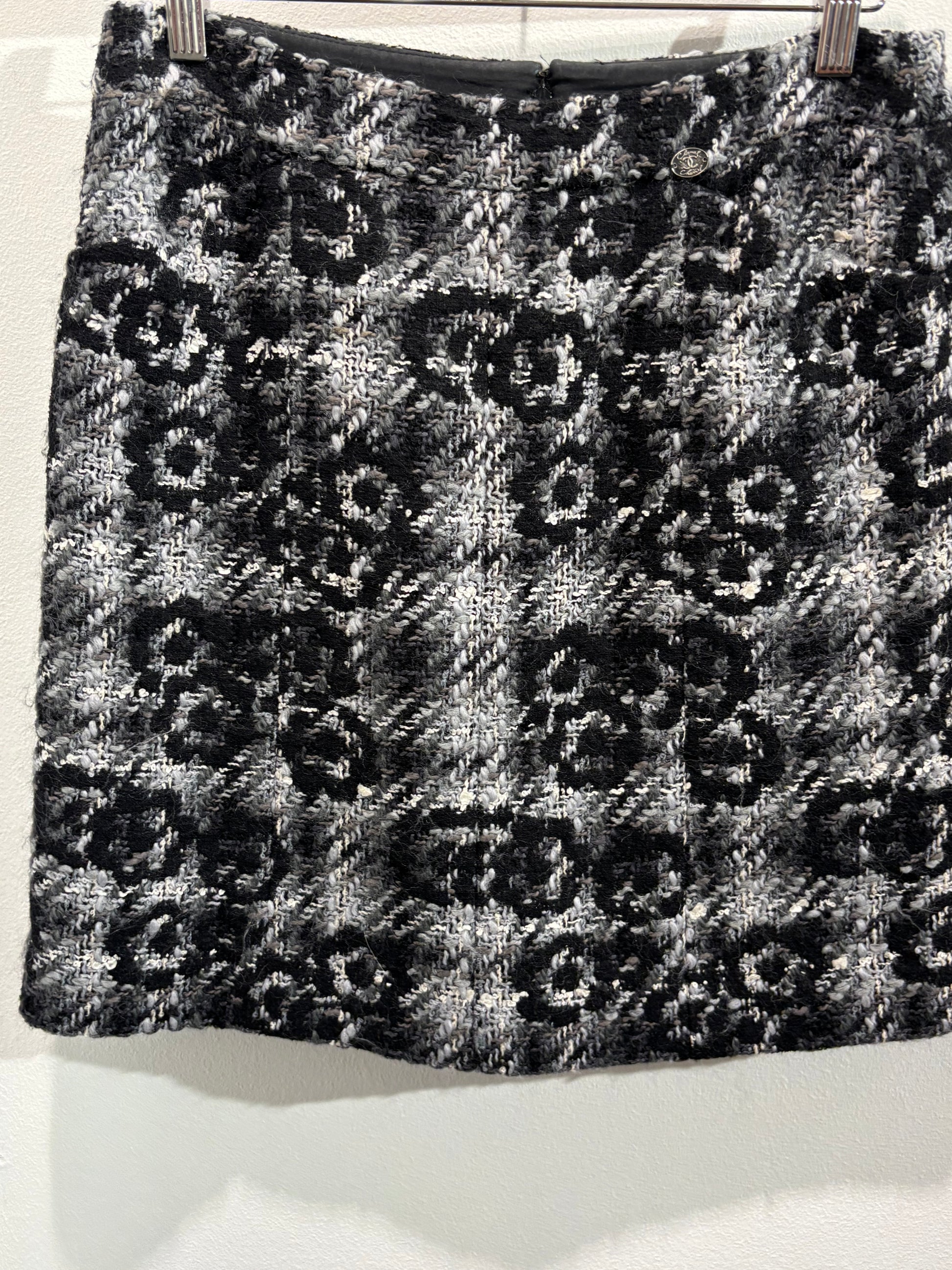 Chanel Skirt – Wool Blend in Grey with Camelias – EU 38