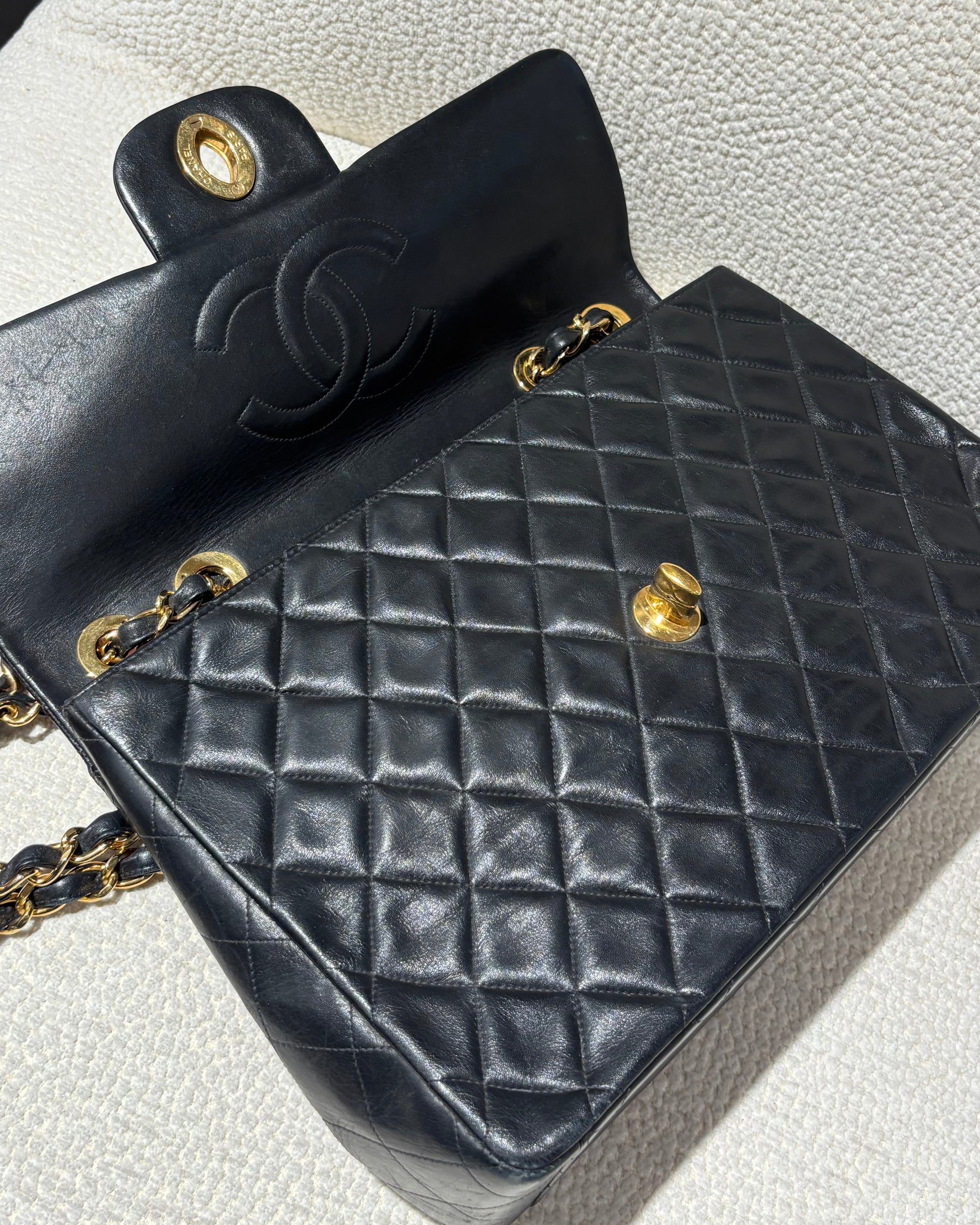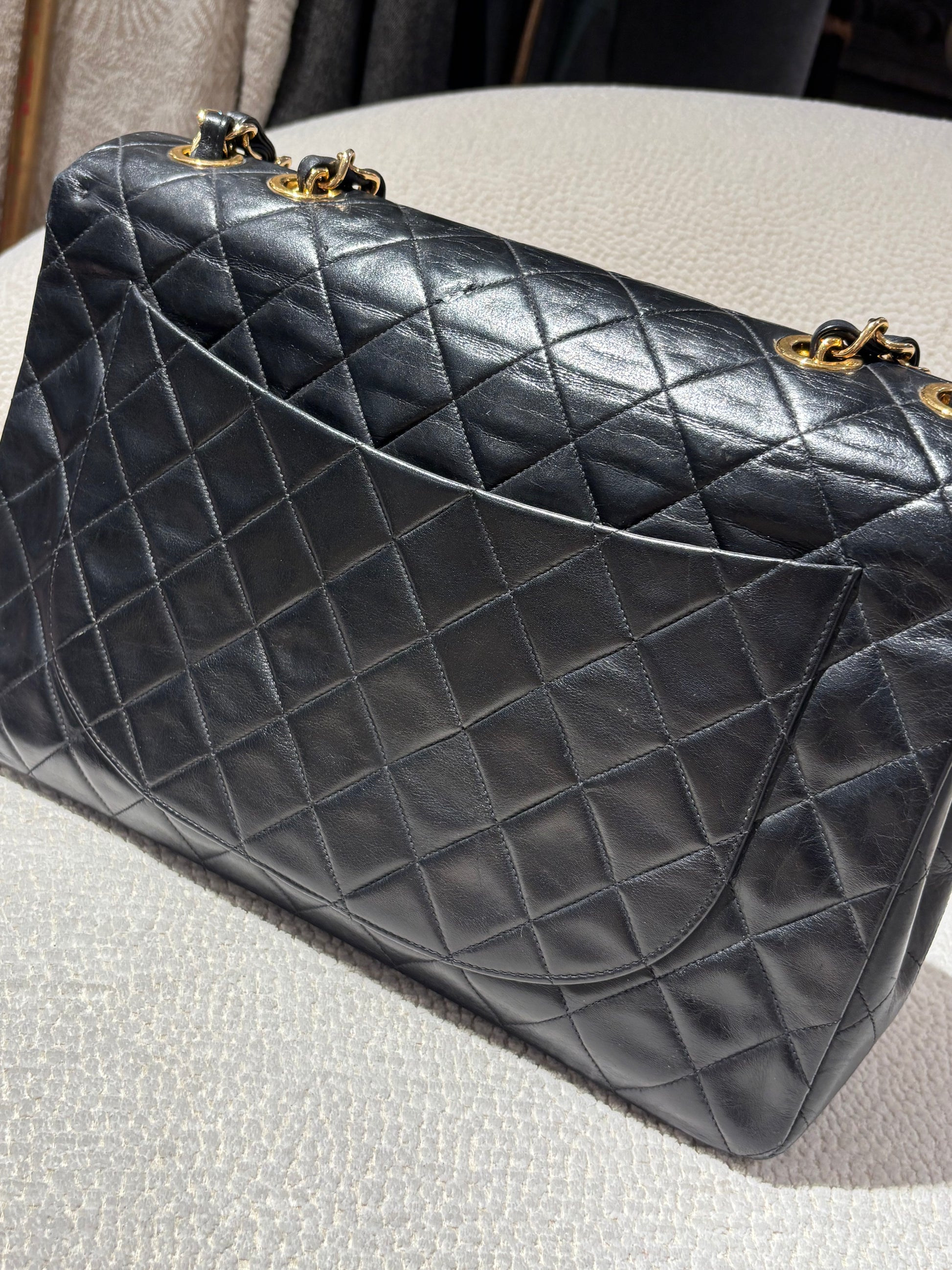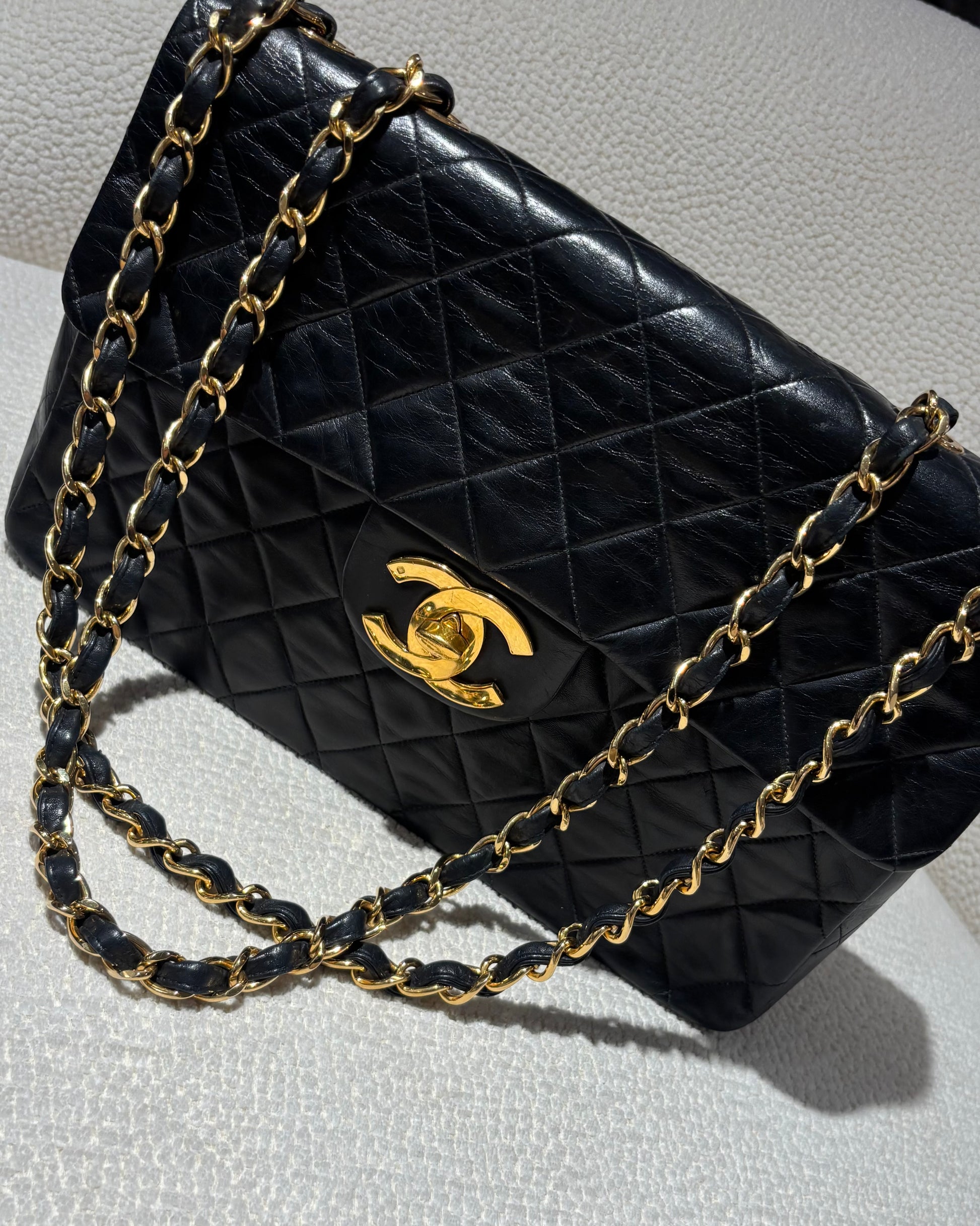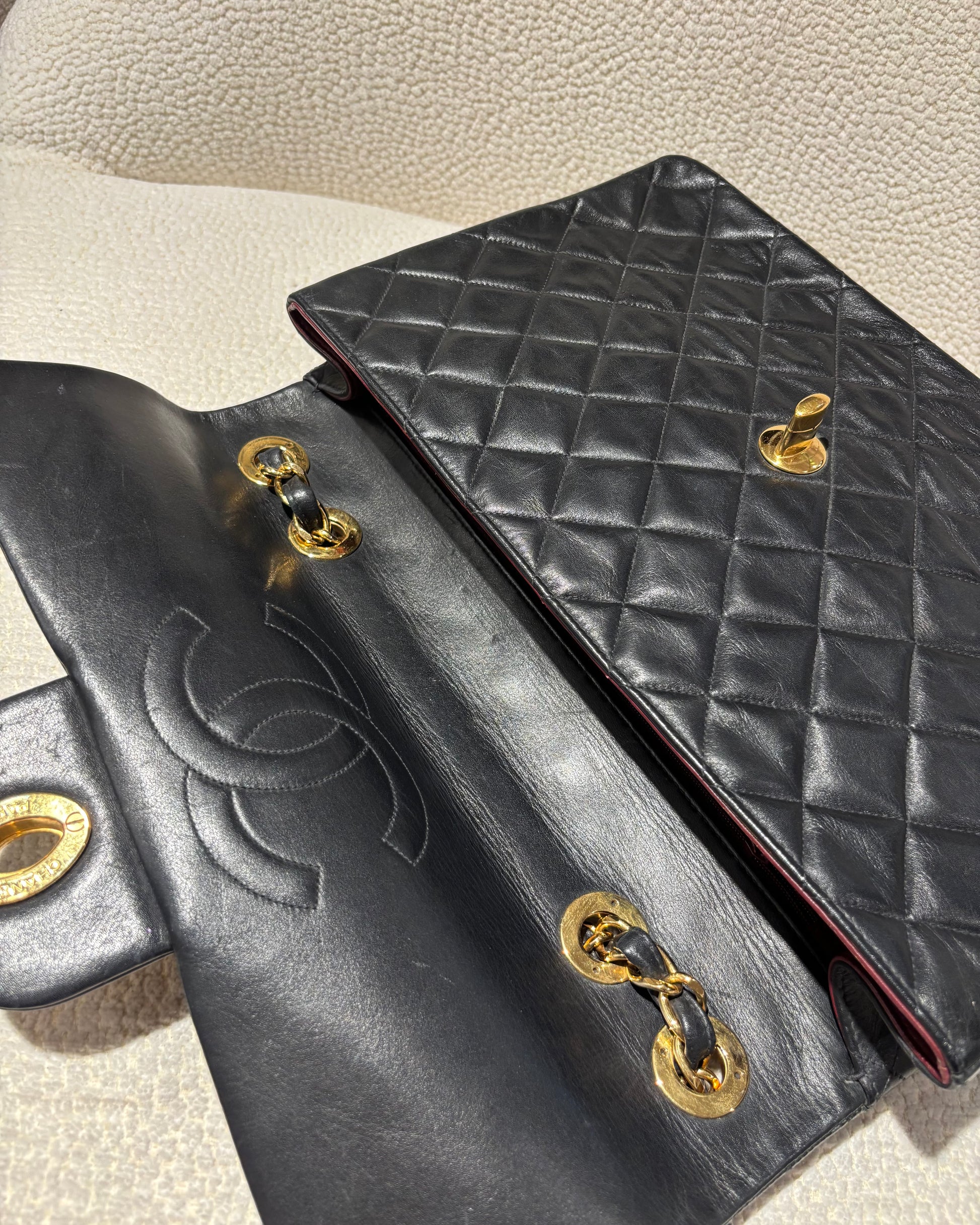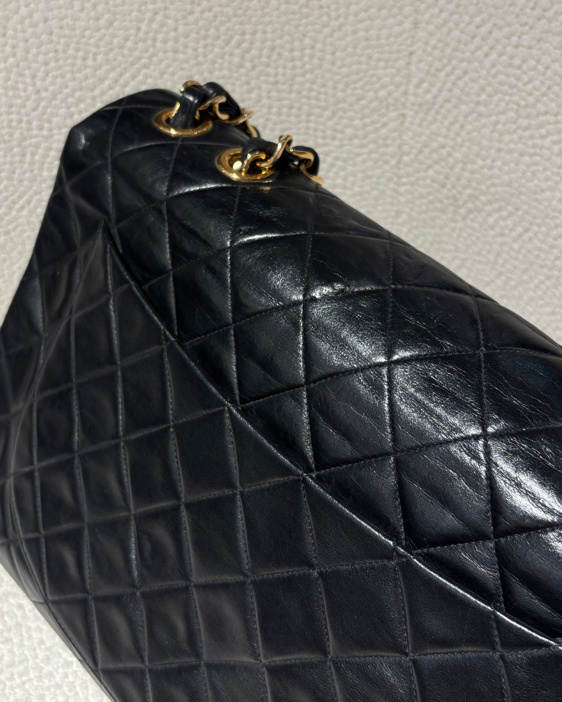 Chanel Vintage XL Classic Flap Bag – Black Lambskin & 24K Gold Hardware