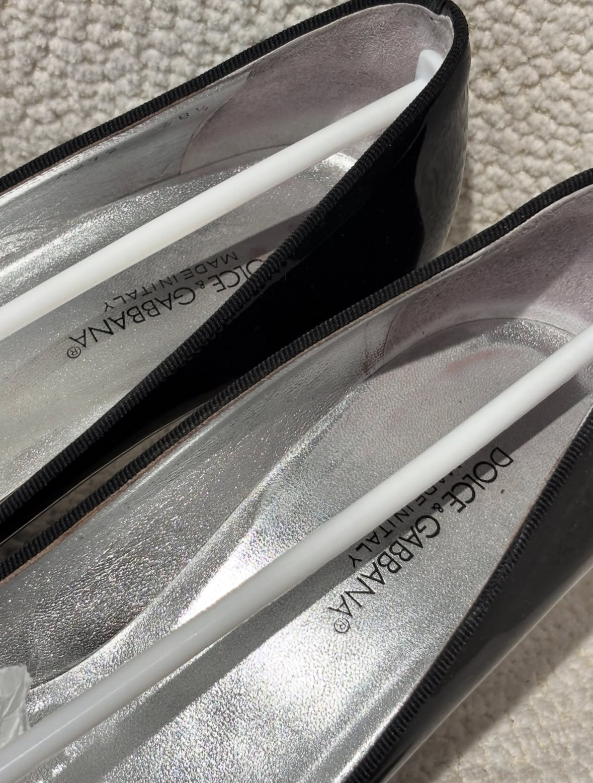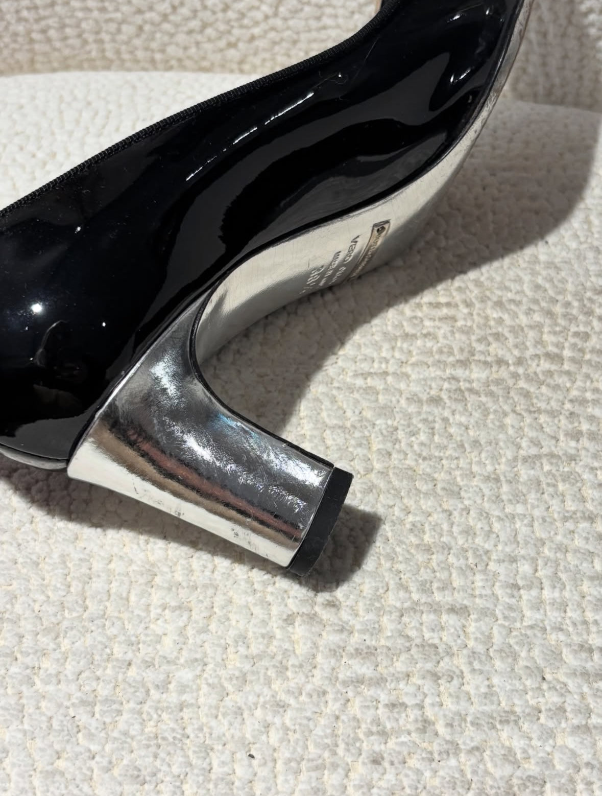 Dolce & Gabbana Heels – Black Patent Leather with Silver Details - EU 38.5
