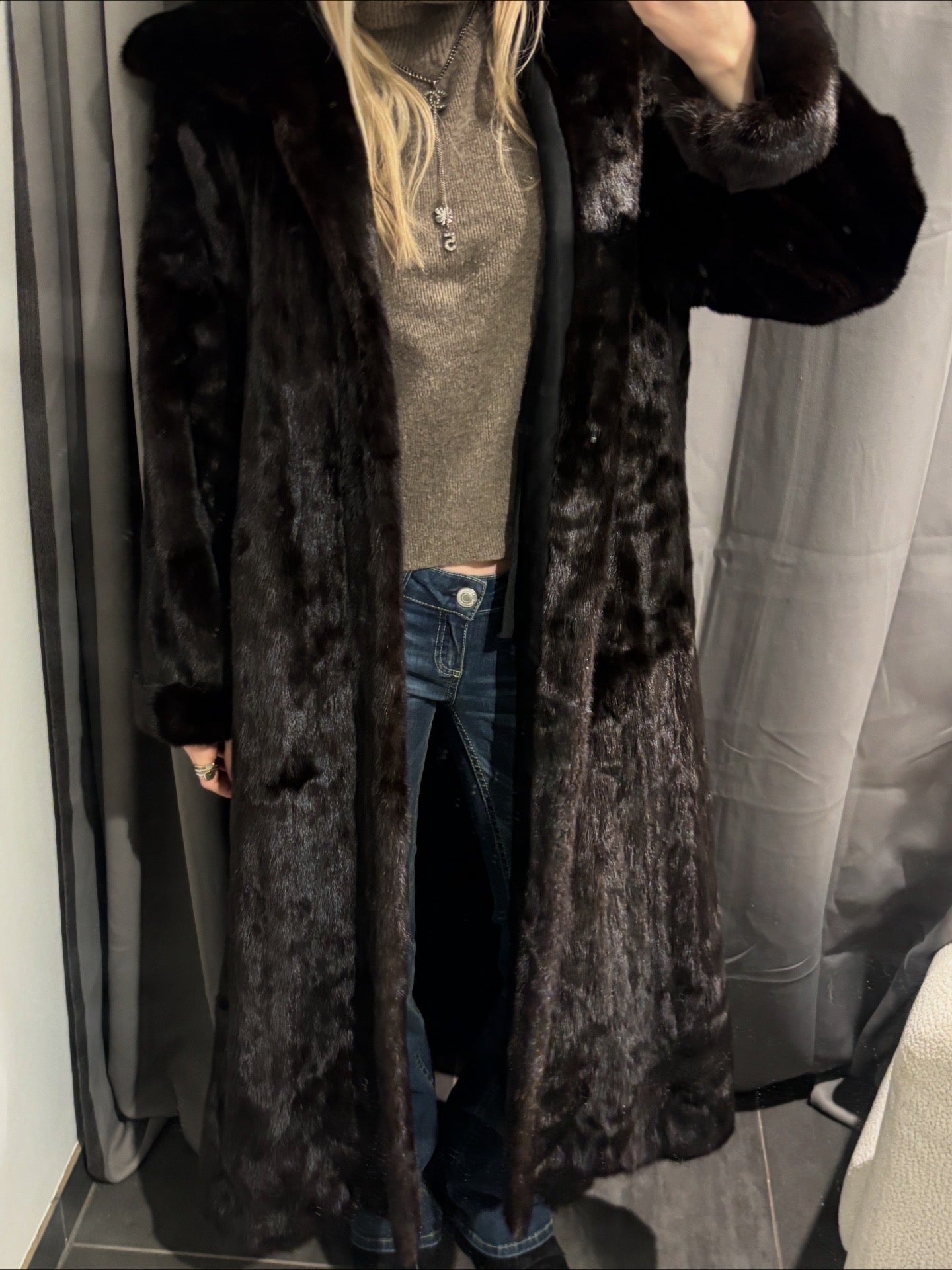 An exceptional and truly spectacular fur coat by renowned furrier Ole B. Christensen. Crafted from an extraordinary number of mink panels, giving the coat its incredibly rich, luxurious look and outstanding quality. Made from female mink, which makes it feel surprisingly light despite the many panels, while still being beautifully warm and comfortable to wear. A bold, statement piece with stunning inner stitching and impeccable craftsmanship throughout — truly a showstopper.