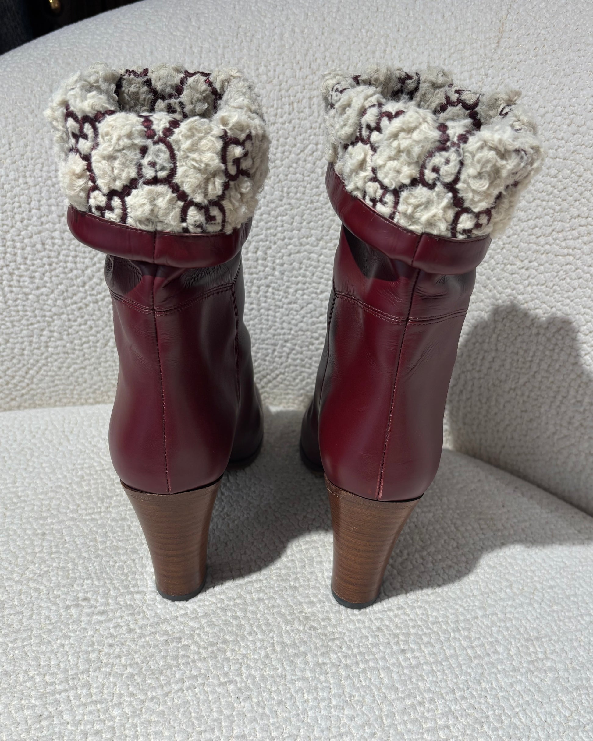 Gucci Boots – Bordeaux Leather & Faux Fur Monogram – EU 41