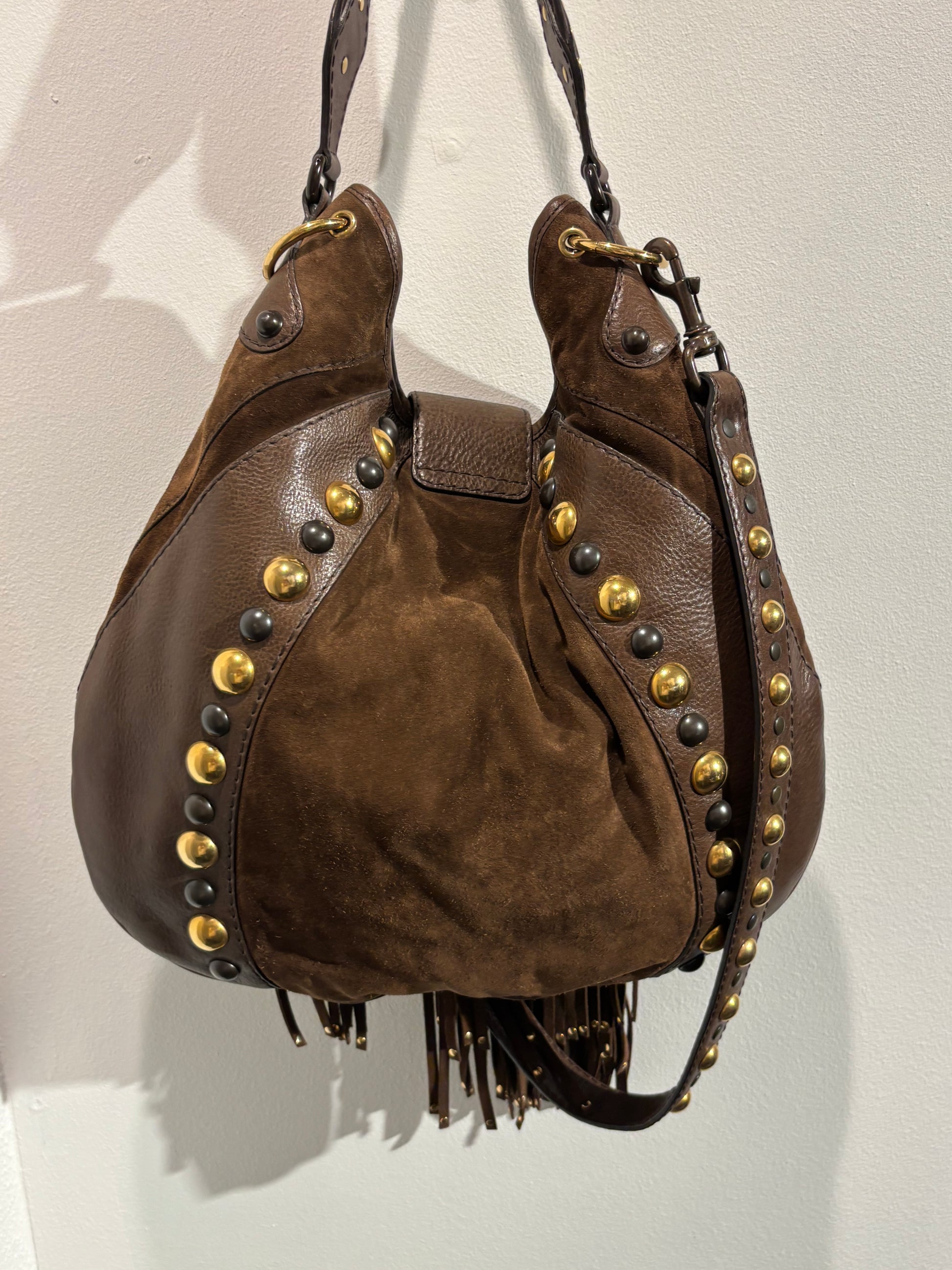 Gucci Fringe Bag – Suede & Leather with Stud Details