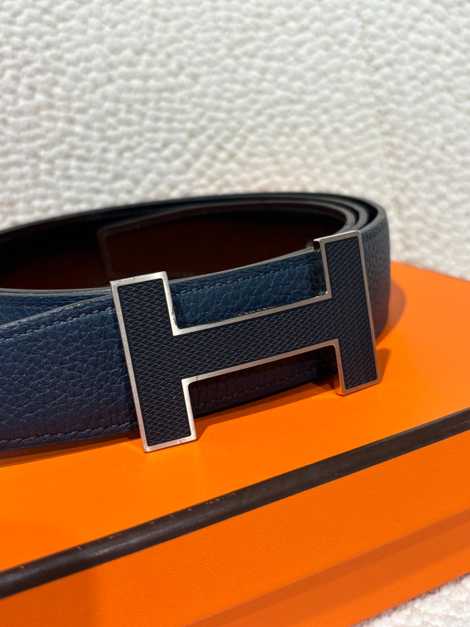 Hermès Belt – Reversible Leather & H Buckle in Navy & Black - Size 90