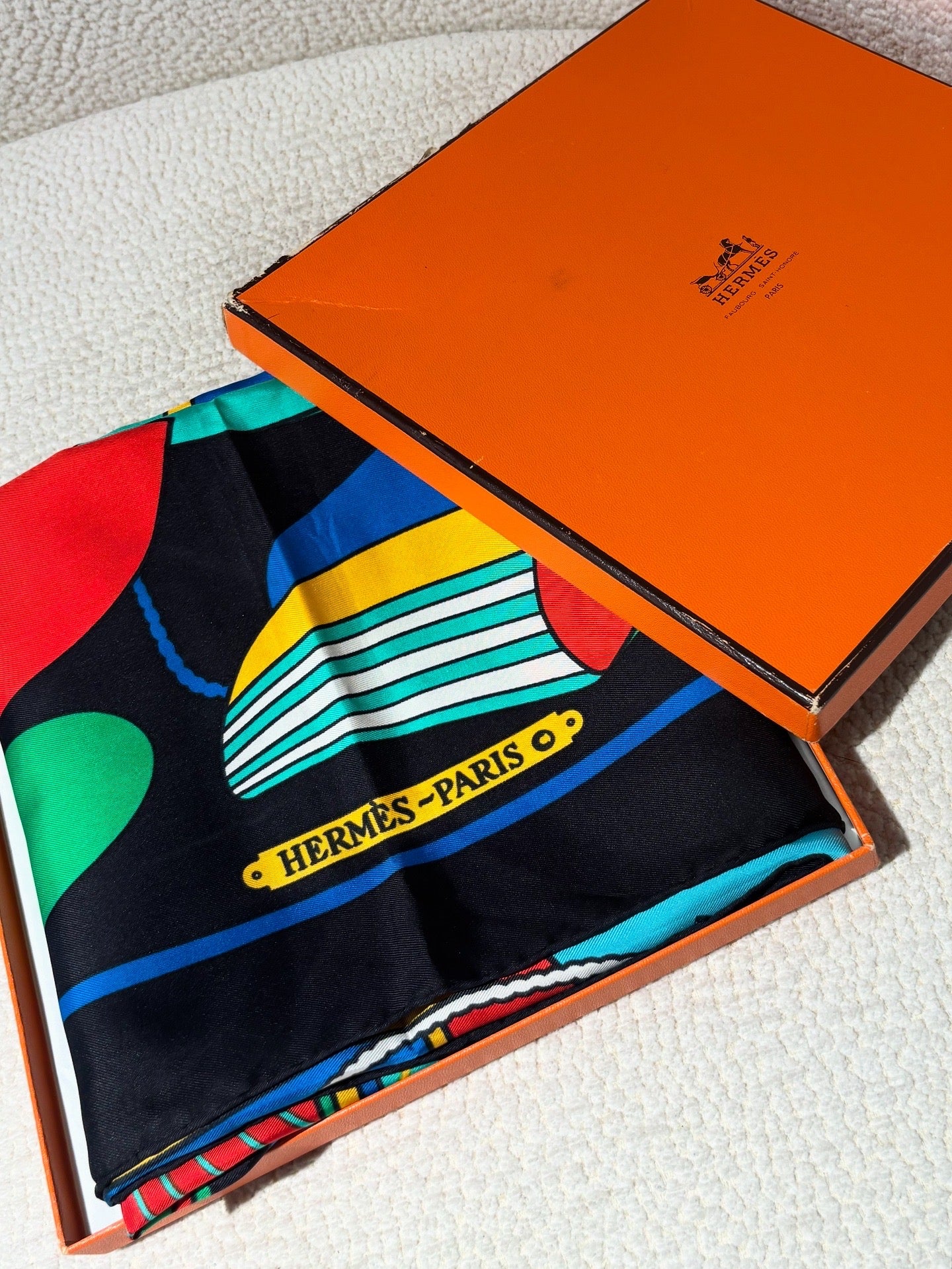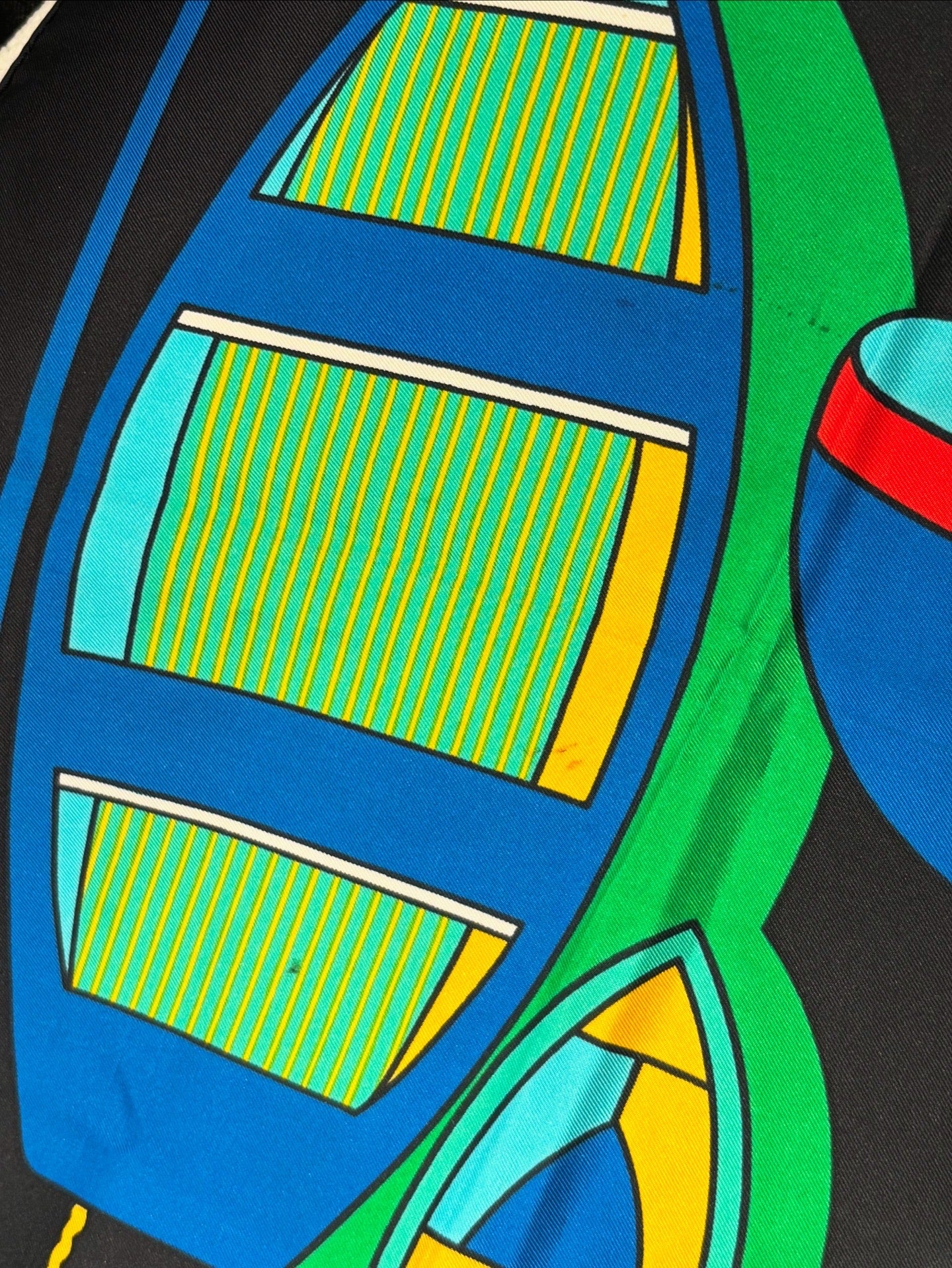 Vintage Hermés Silk Scarf - Black with Vibrant Boat Pattern