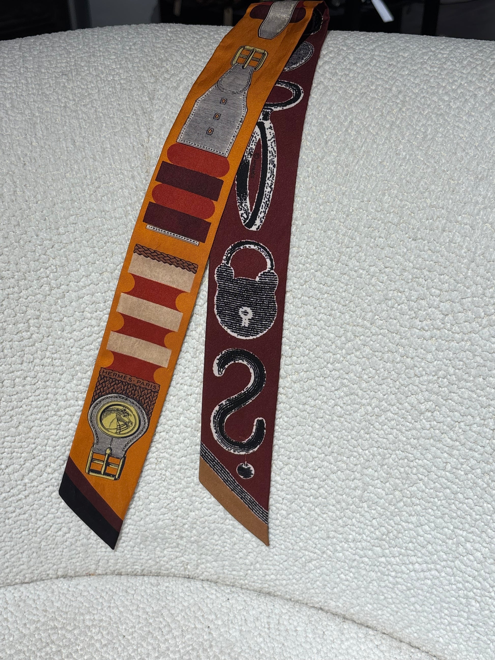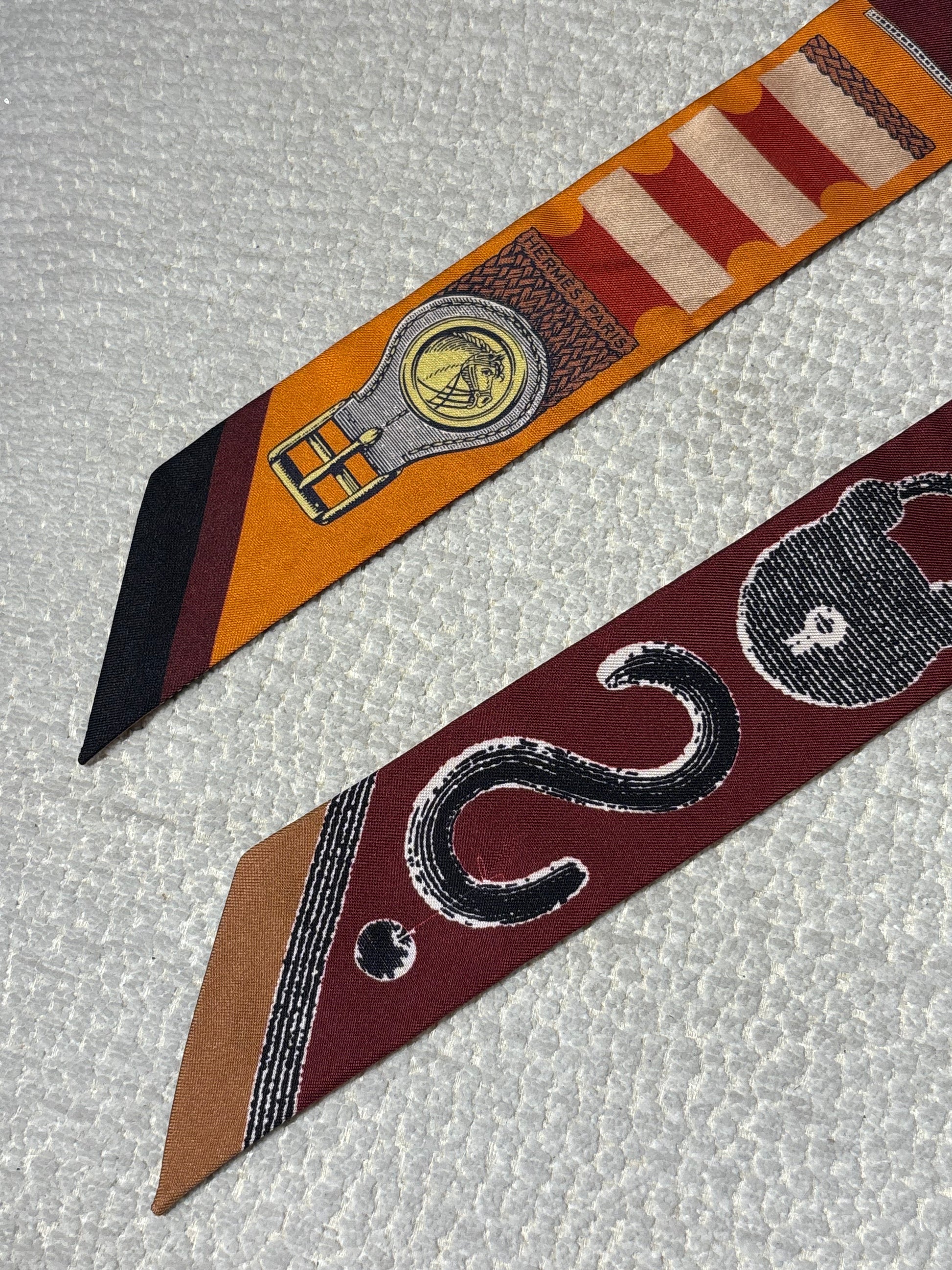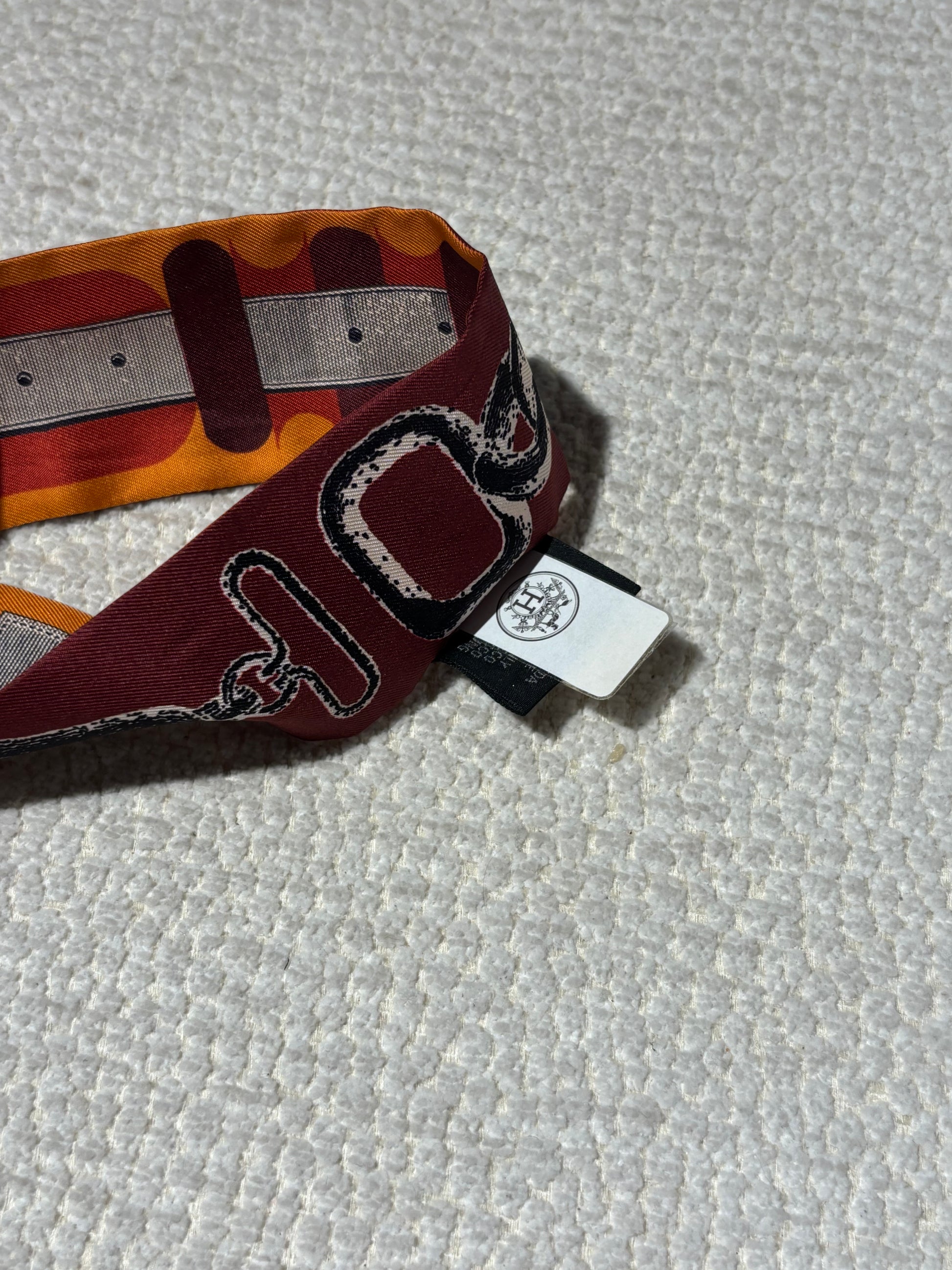 Hermés Silk Twilly - Burgundy & Orange with Horse Motif
