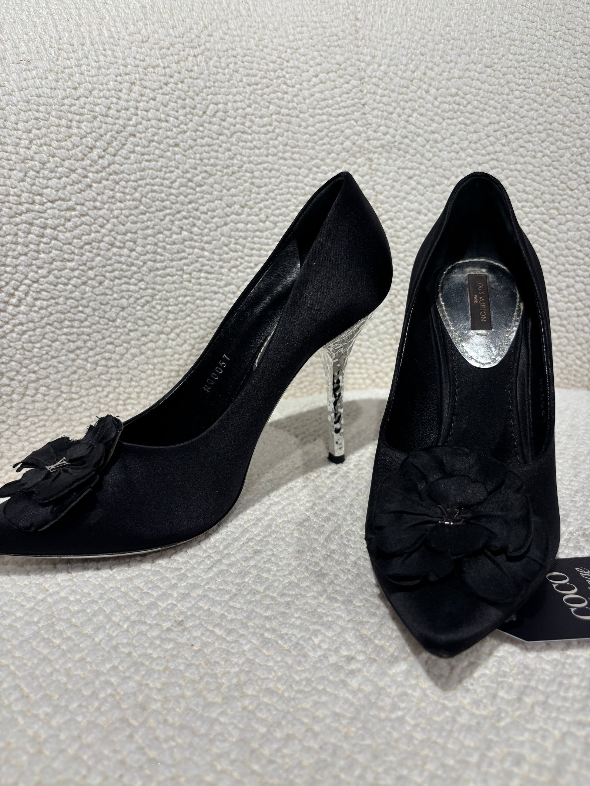Louis Vuitton Heels – Metallic Heel & Satin with LV Logo - EU 38