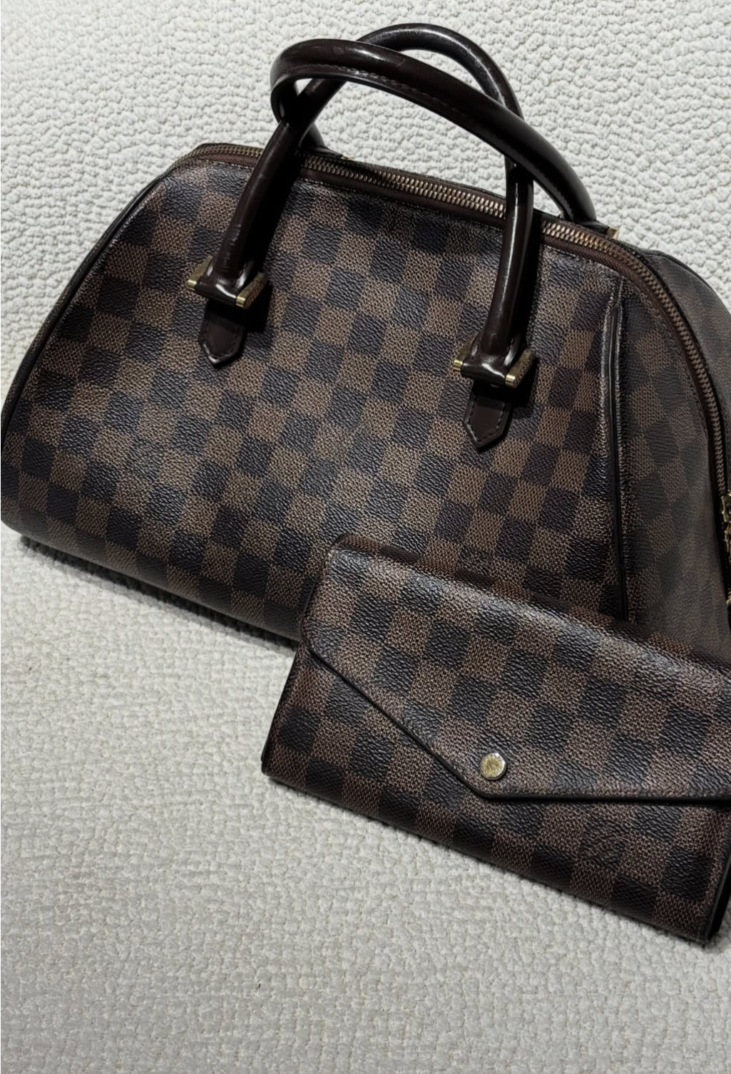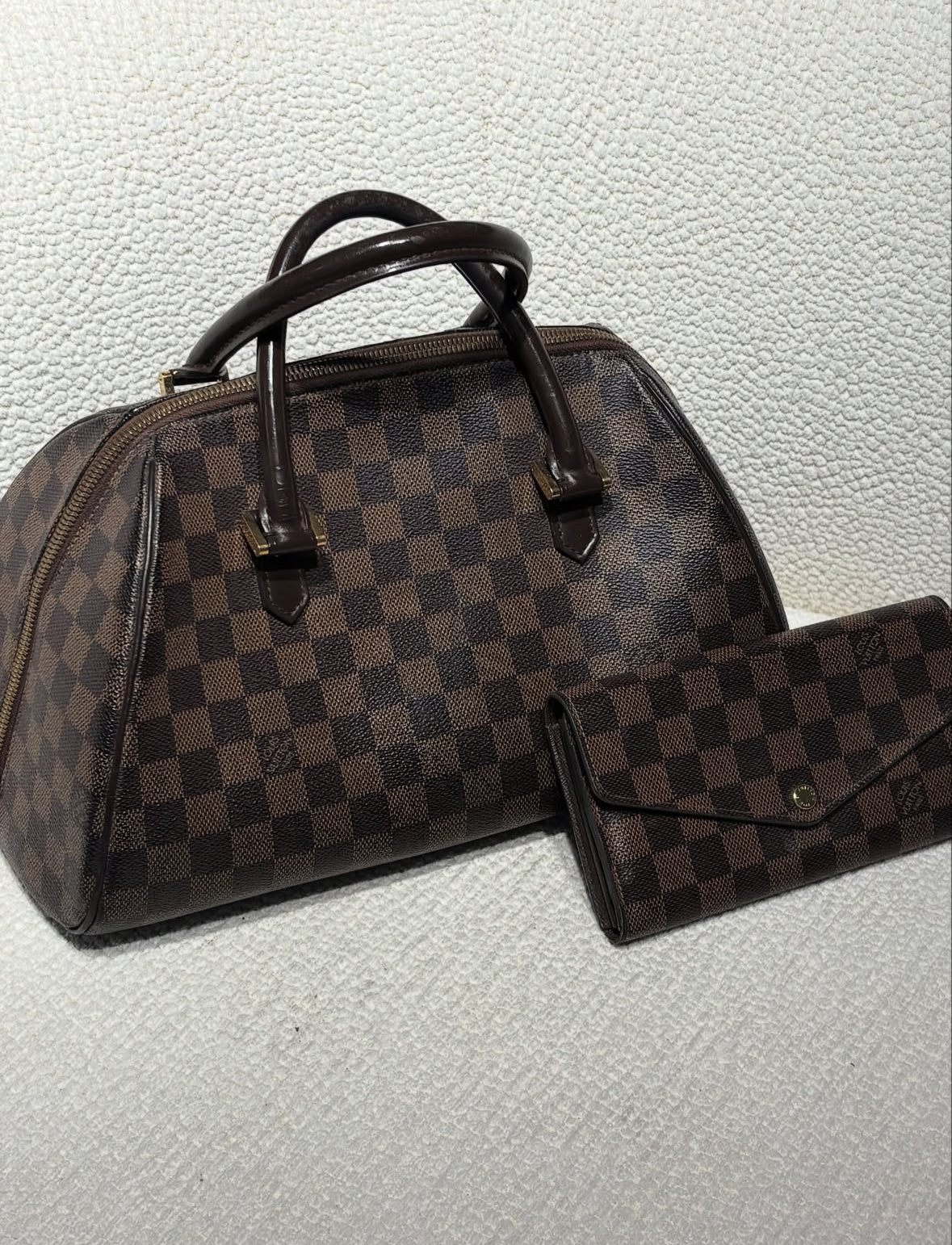 We also sell a long wallet with matching Damier print on our website, just like in the photos.