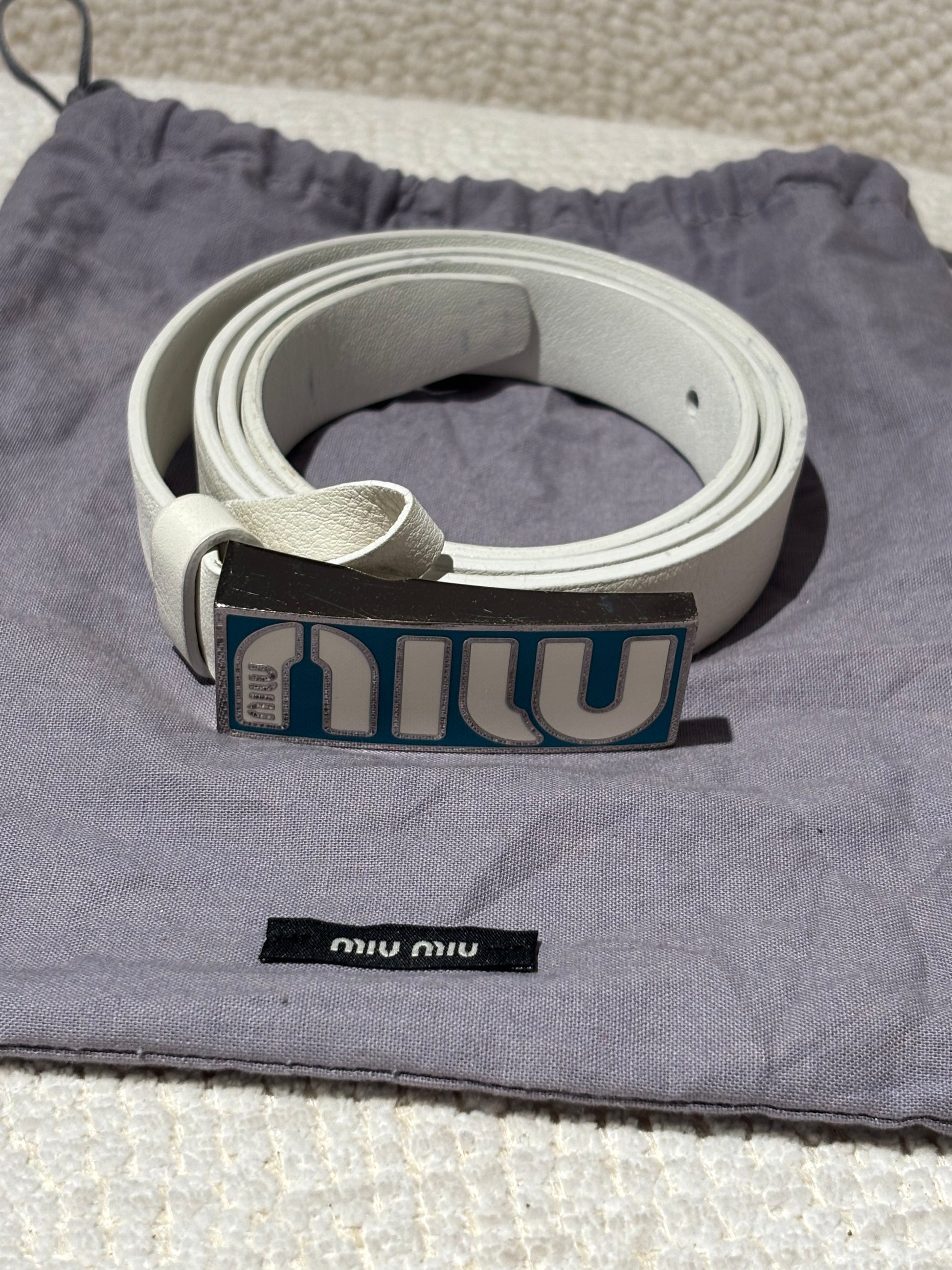 Miu Miu Belt - White Leather & Turquoise Buckle