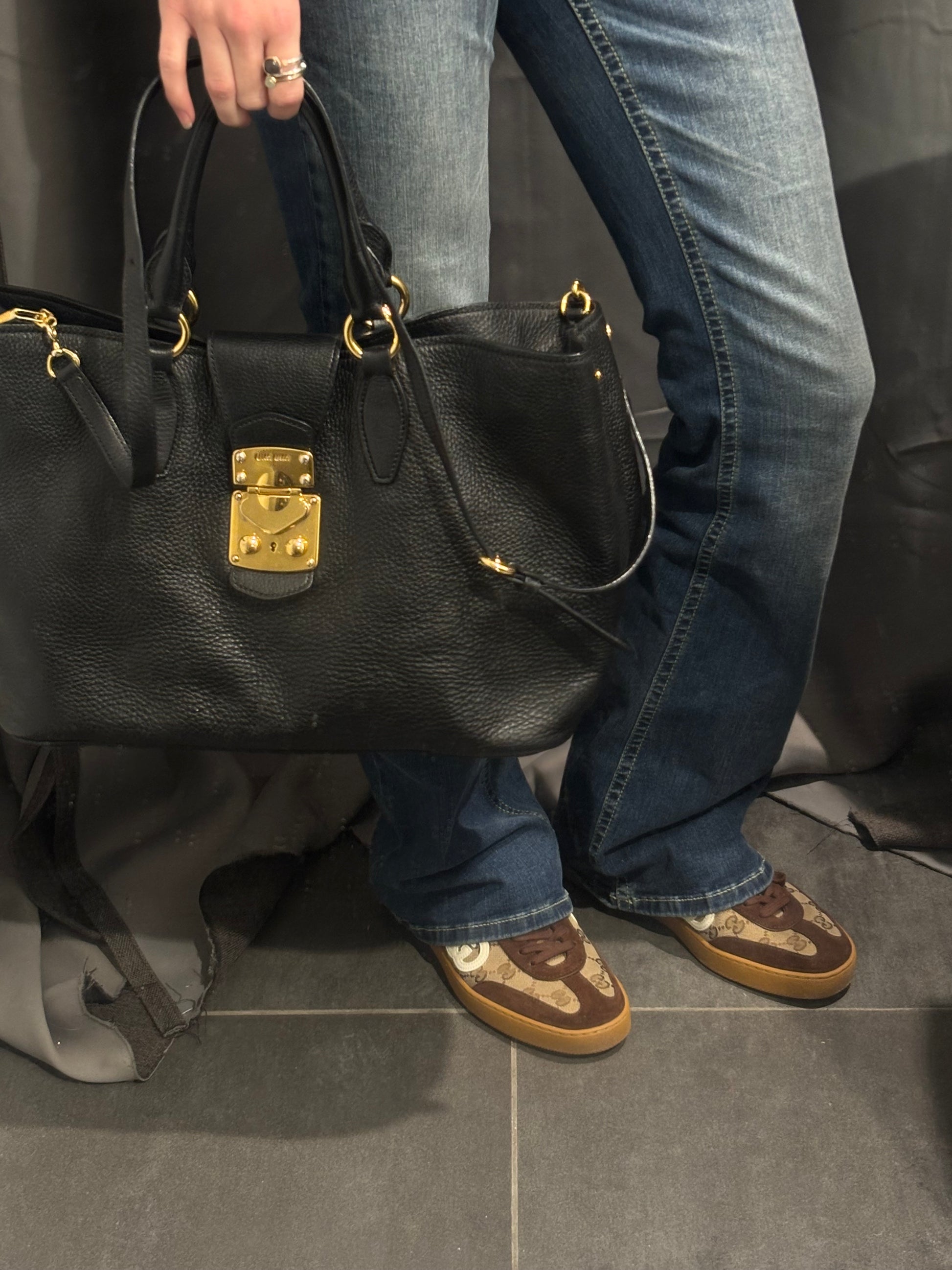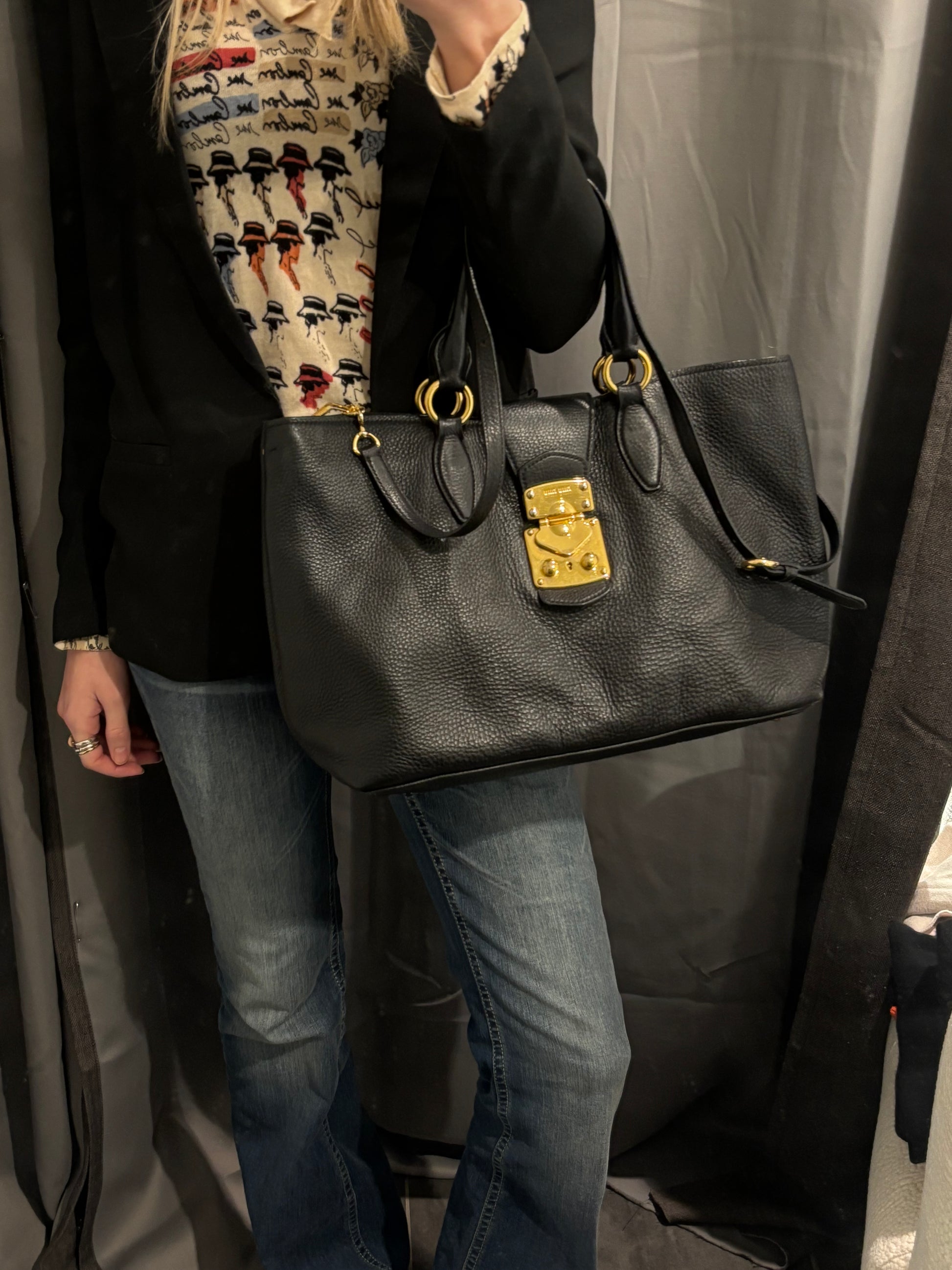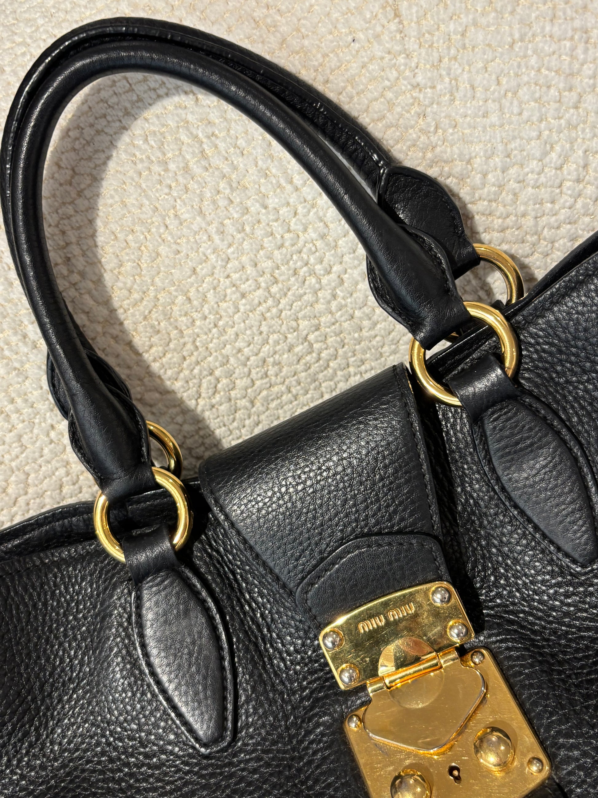 Miu Miu - Vitello Caribu Tote - Black Leather & Gold Hardware