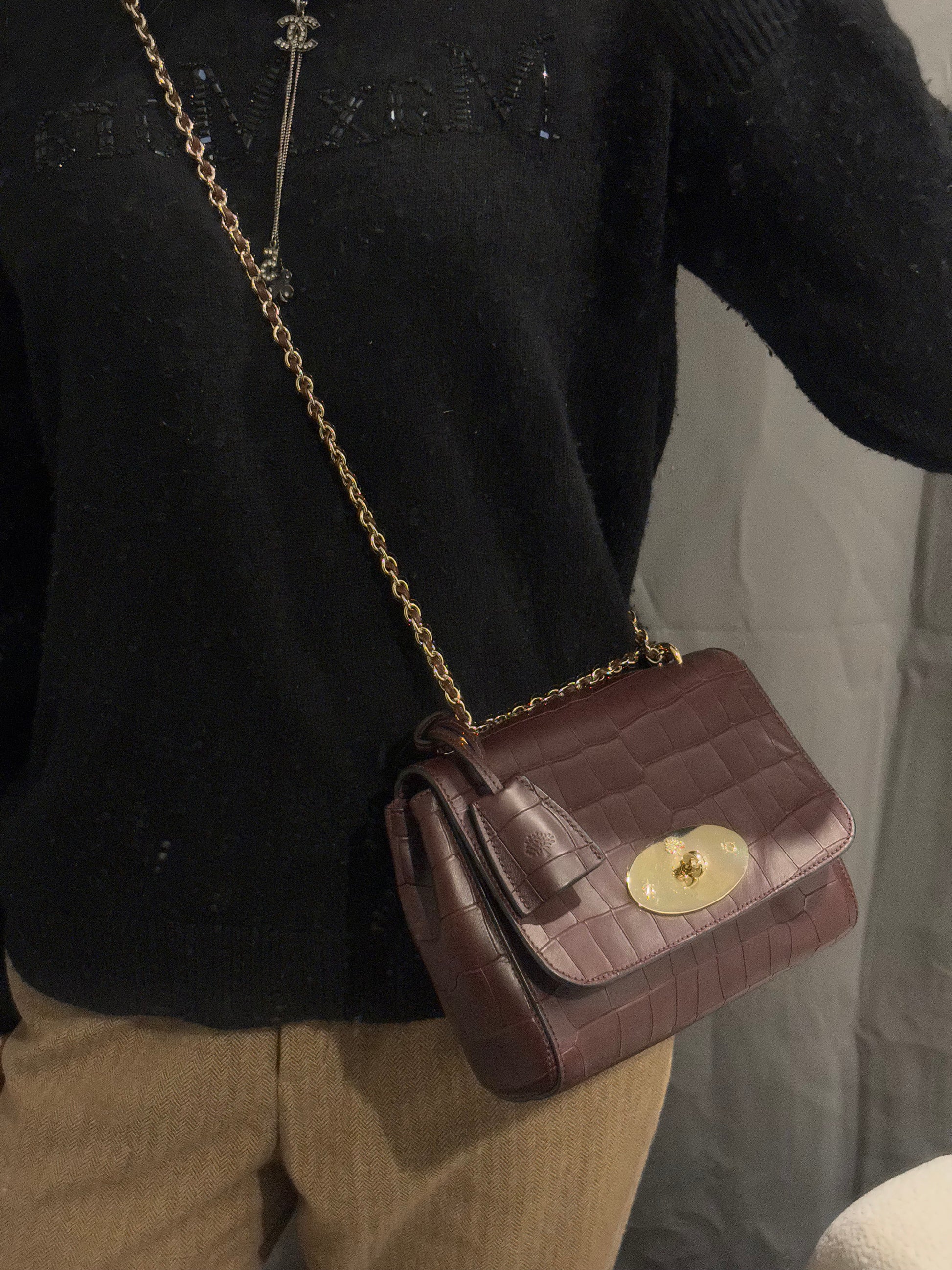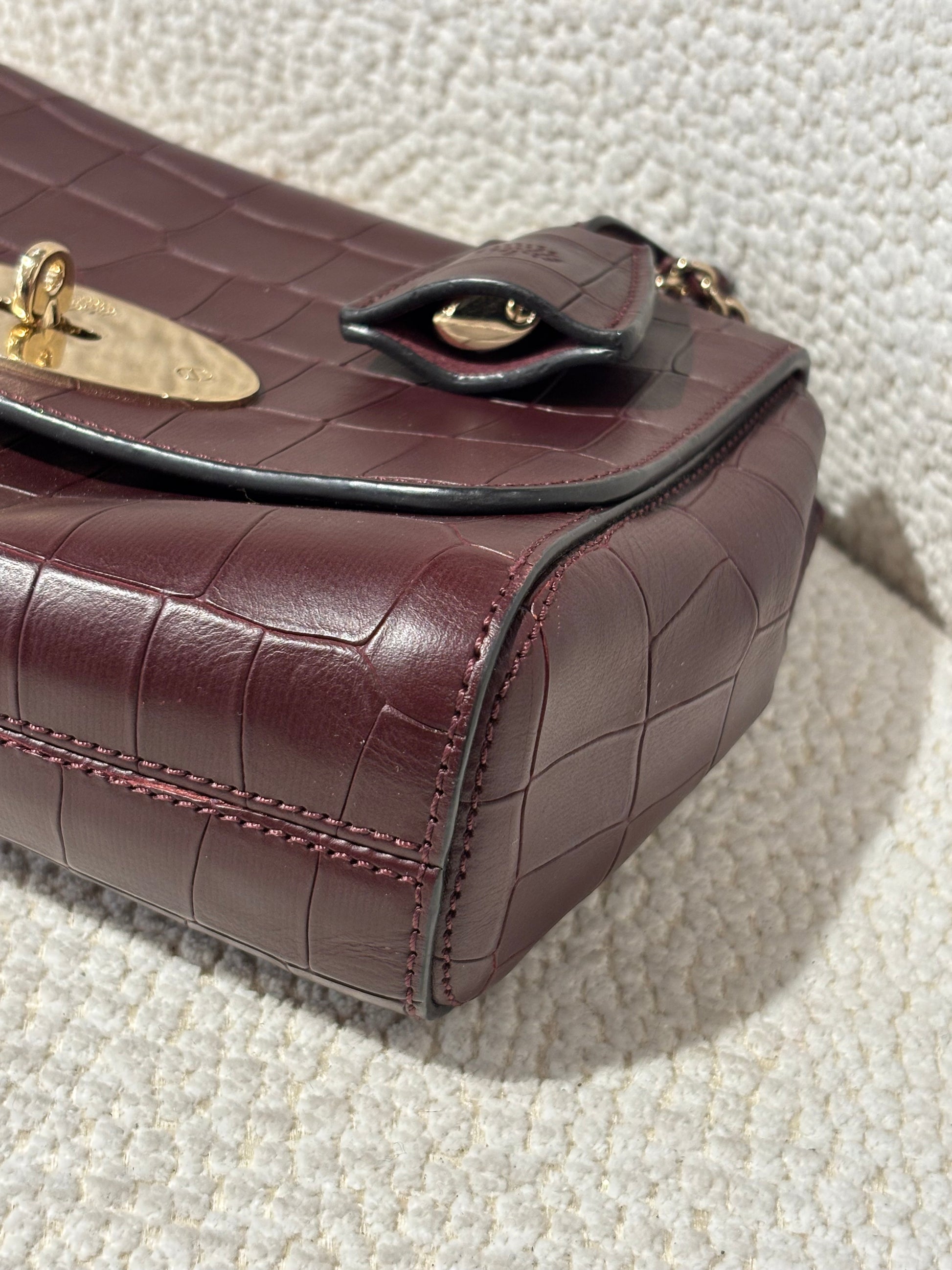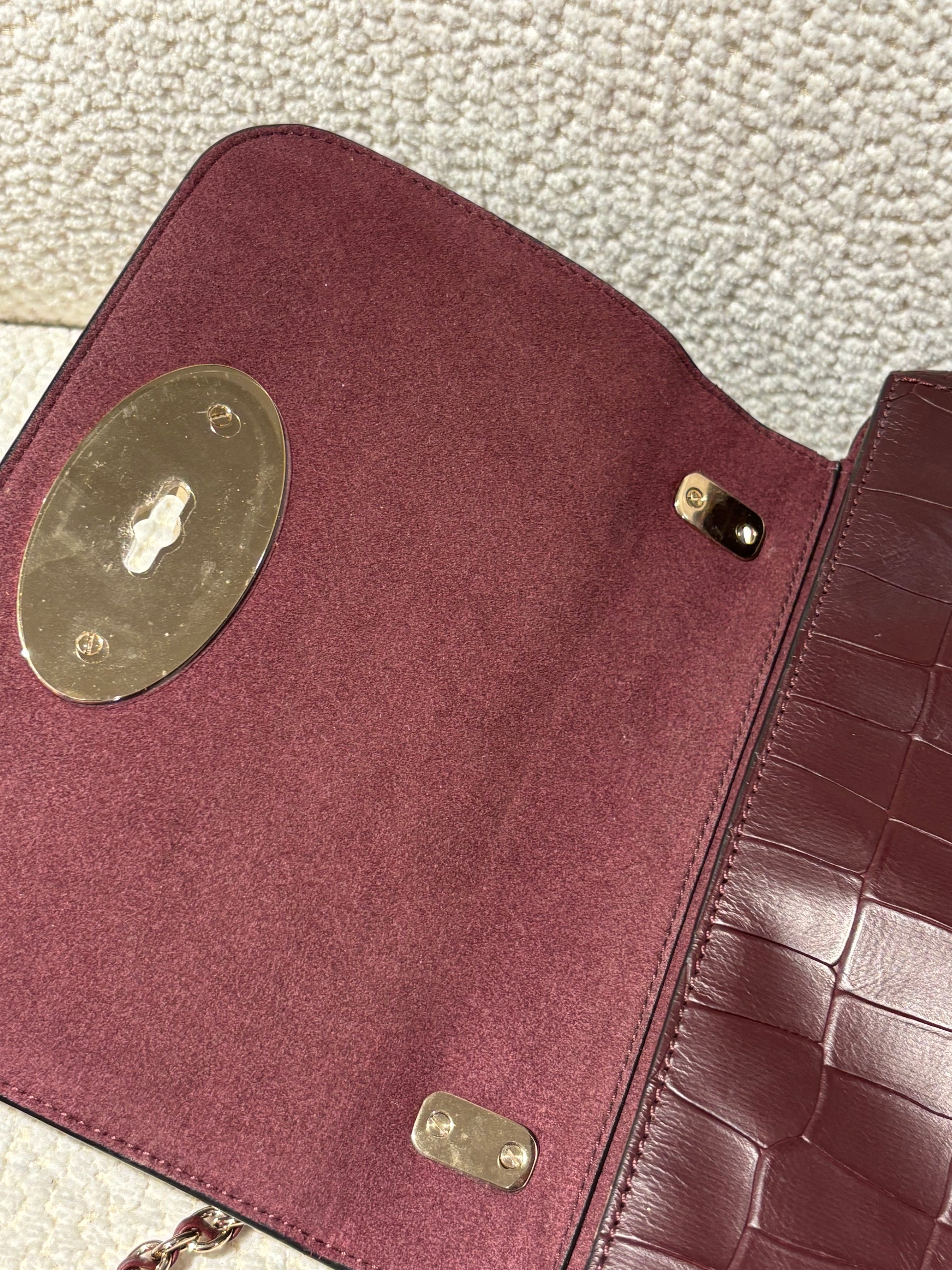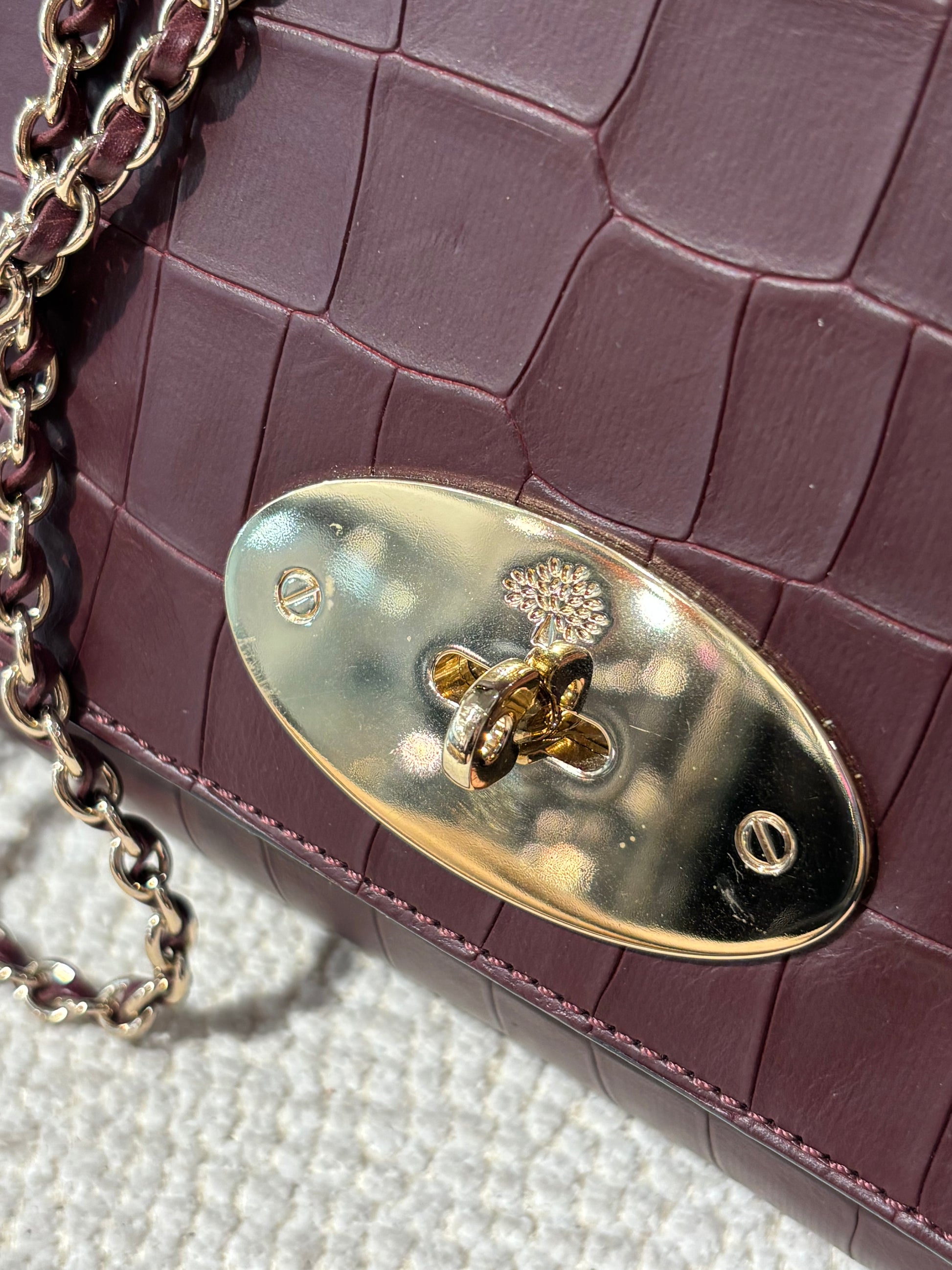 Mulberry Lily bag - Burgundy Crocodile-embossed leather & Gold Hardware