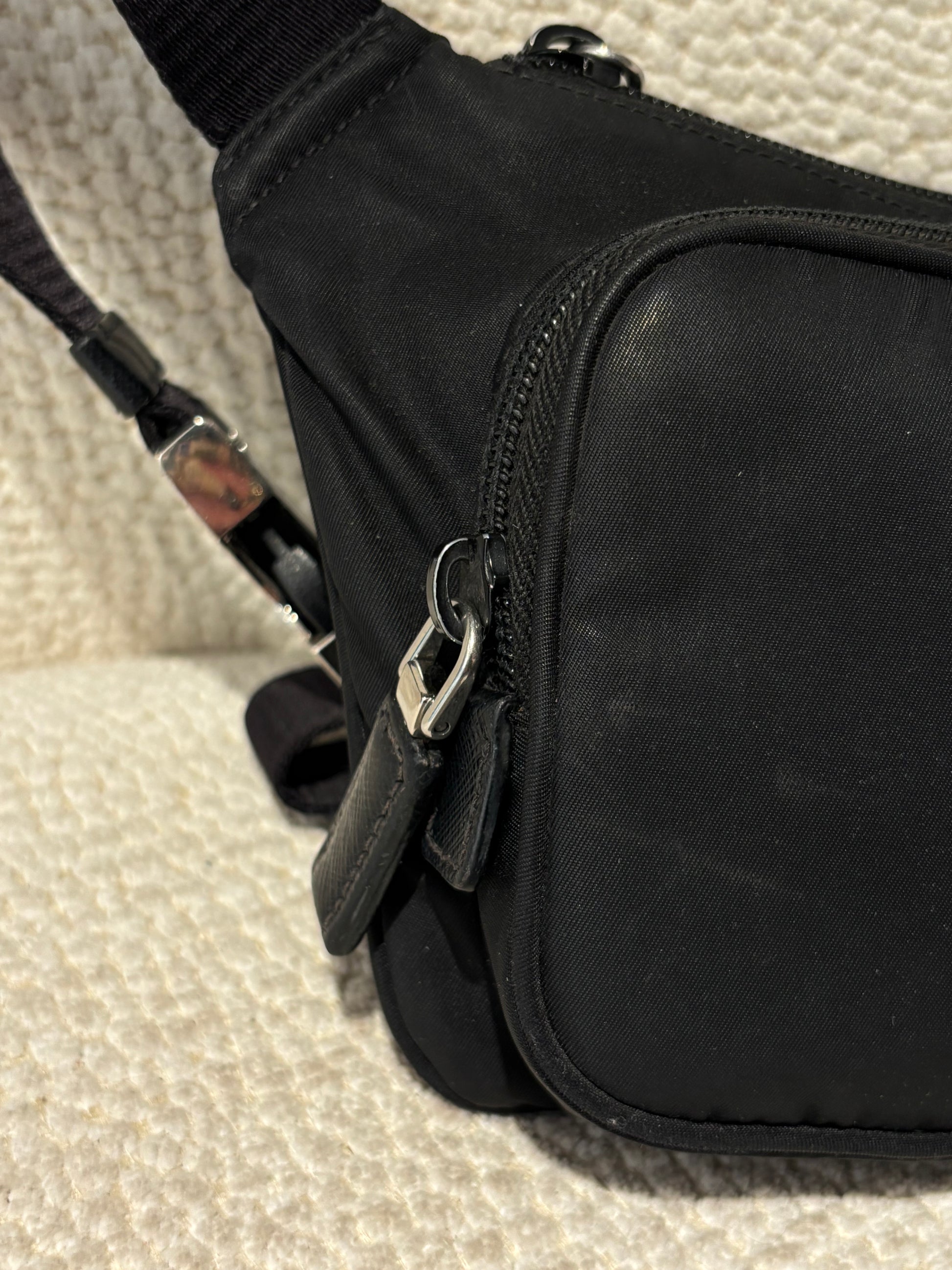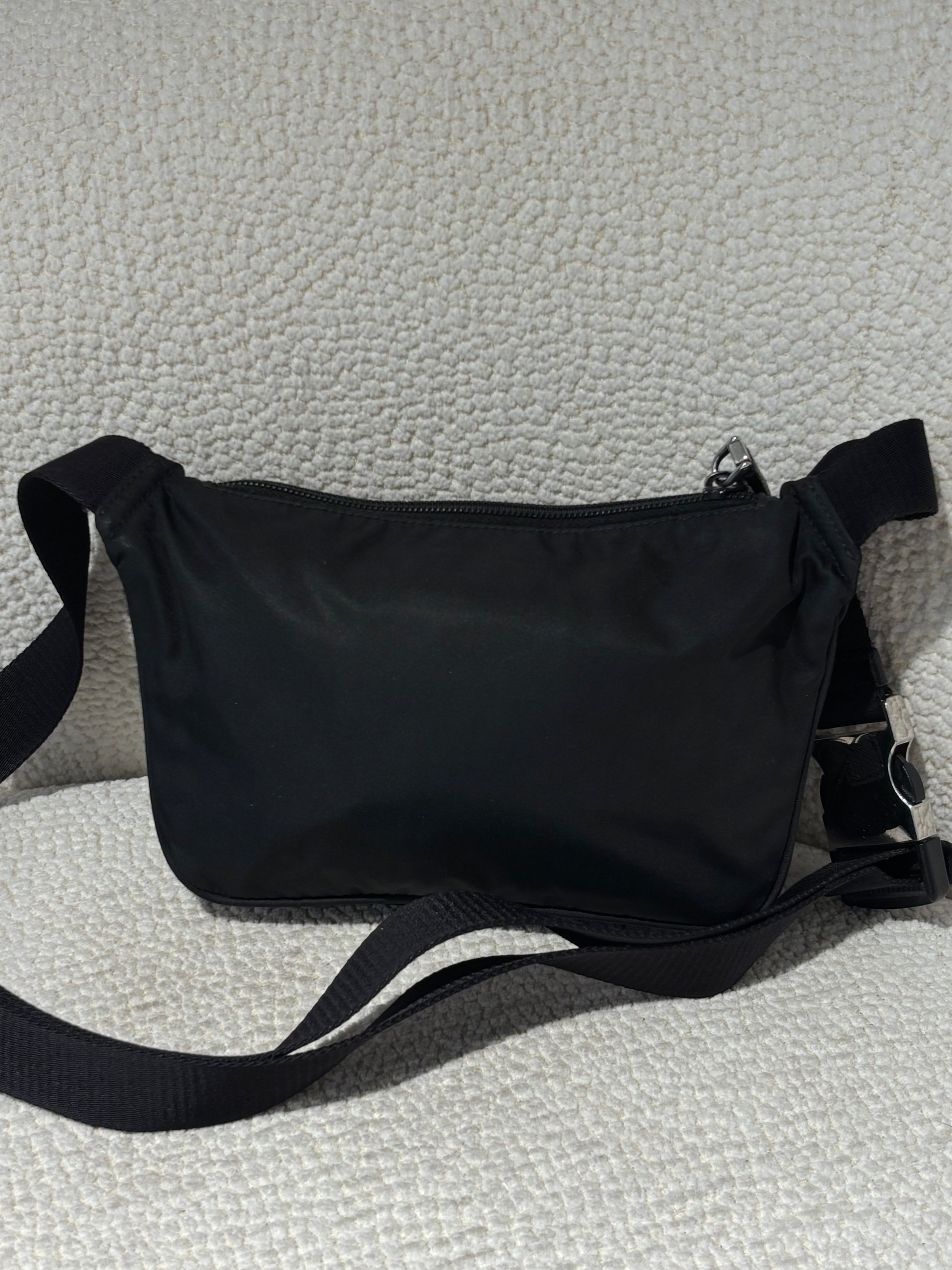 Prada Crossbody Bag - Black Nylon & Silver Logo