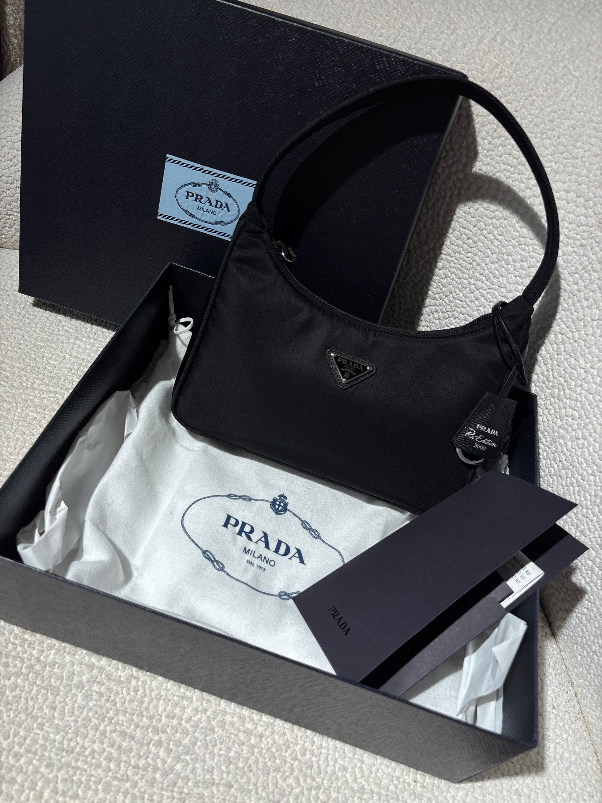 A stunning Prada Re-Edition bag in the iconic and classic black.