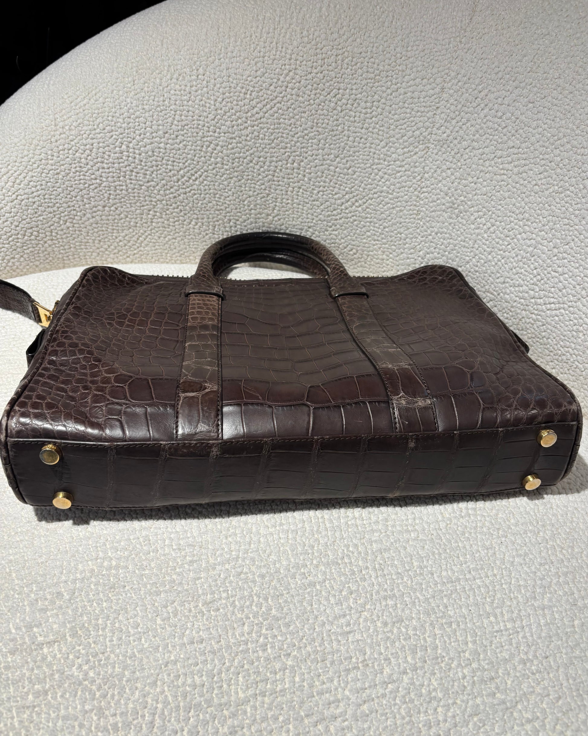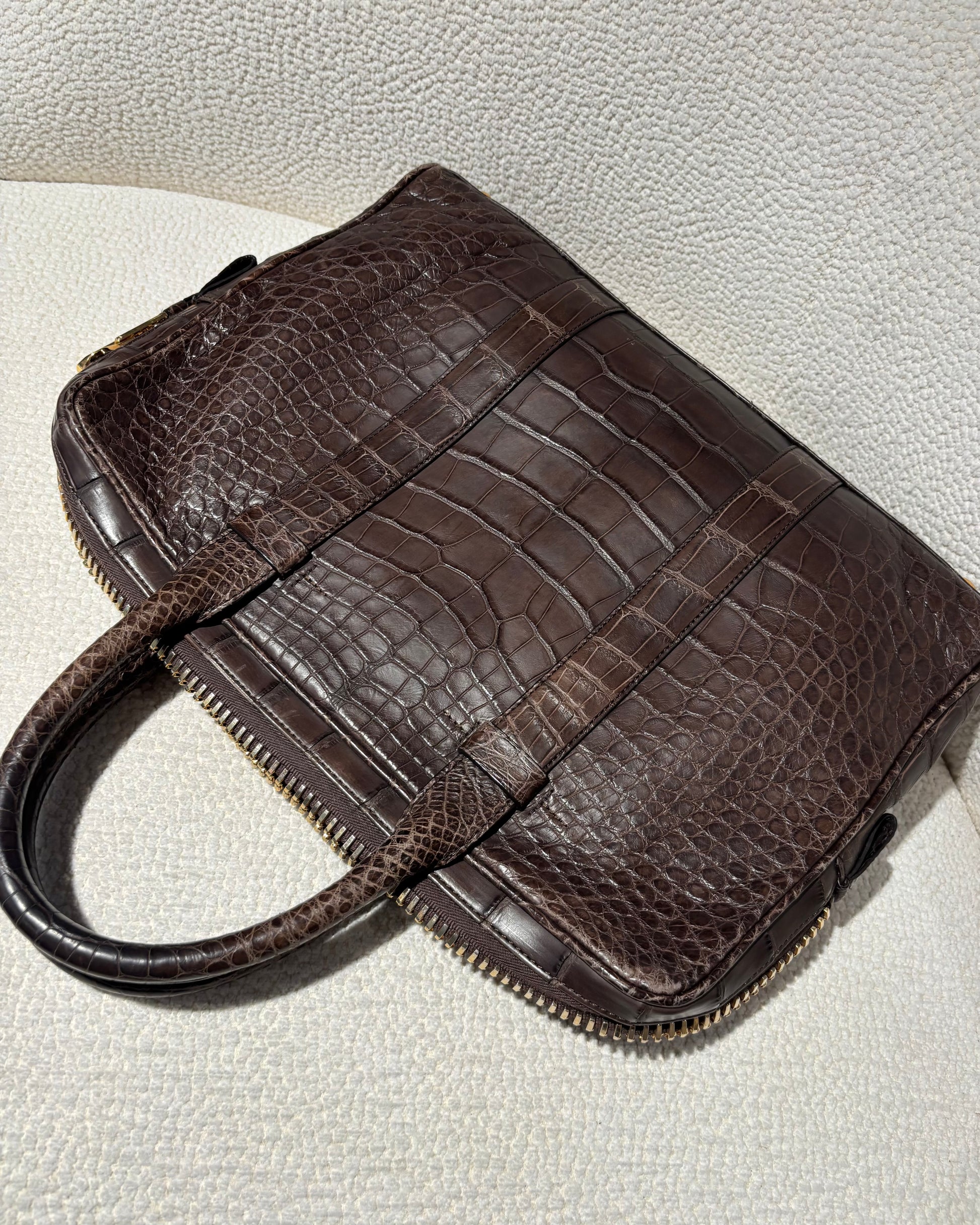 Tom Ford Attaché - Real Crocodile in Brown & Gold Zipper