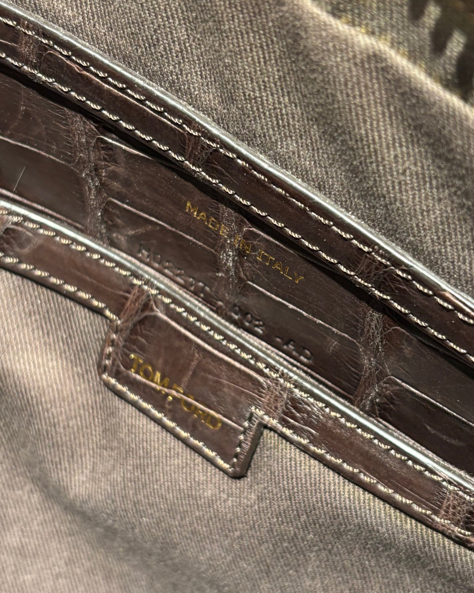 An absolutely extraordinary Tom Ford attaché bag crafted in genuine crocodile — a true masterpiece. Extremely rare and highly collectible. Originally purchased in 2022. Exotic materials like crocodile are among the rarest in the luxury world and represent one of the strongest long-term investments, consistently rising in value over time.