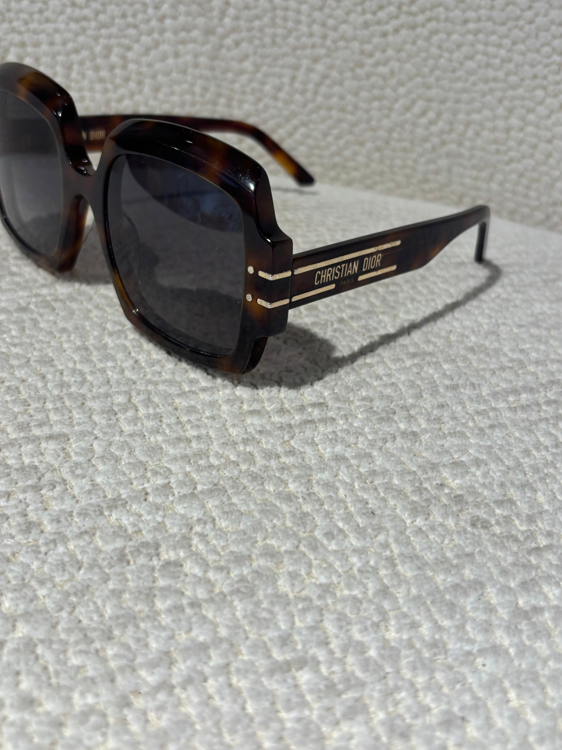 Stunning Christian Dior sunglasses in a beautiful brown tortoiseshell pattern with elegant gold-tone details and logo lettering. Super luxurious and timeless — and the kind of sunglasses that truly go with everything.