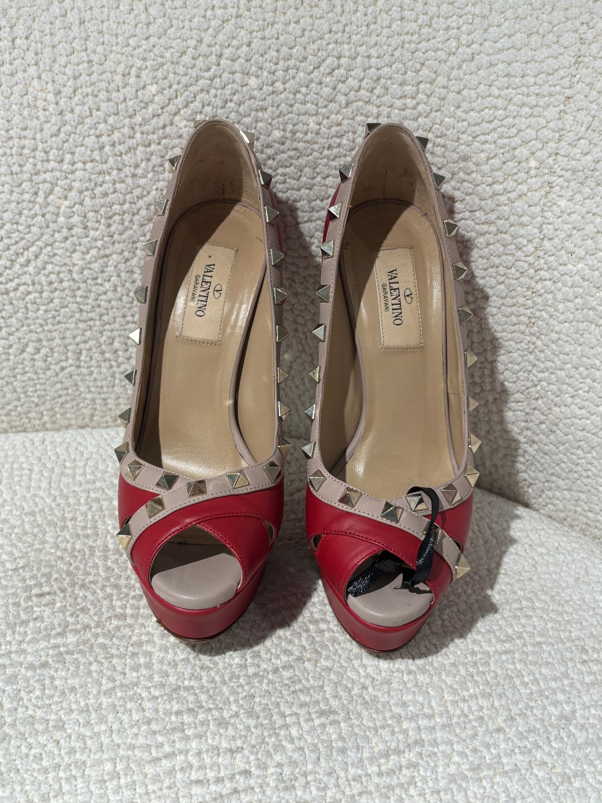 Valentino Platform Heels – Red Leather with Pink Trim & Studs - EU 36