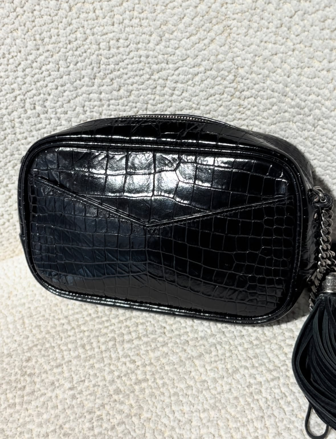 Yves Saint Laurent Crossbody – Crocodile Embossed Leather - Black